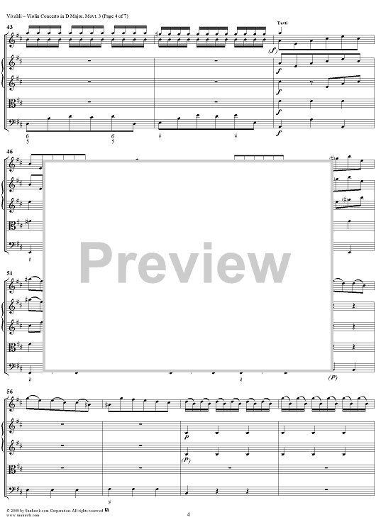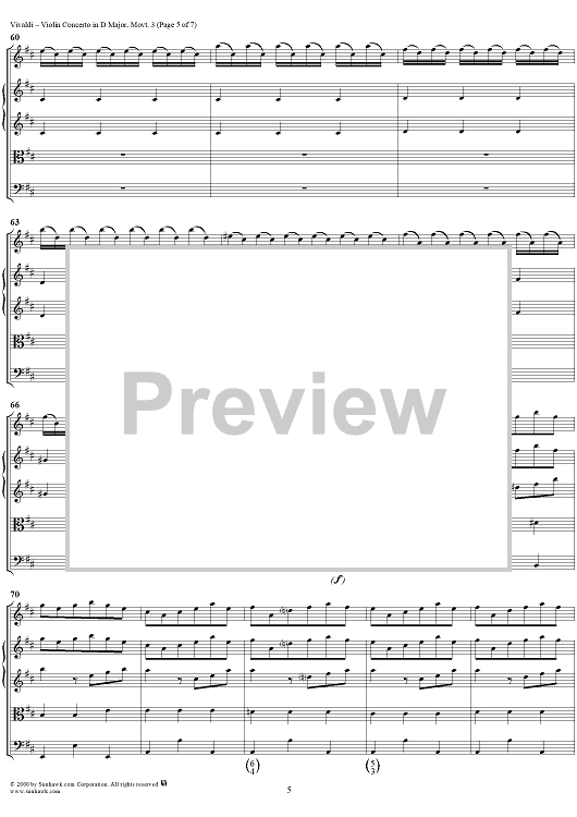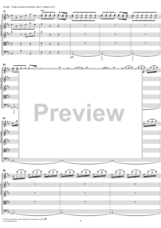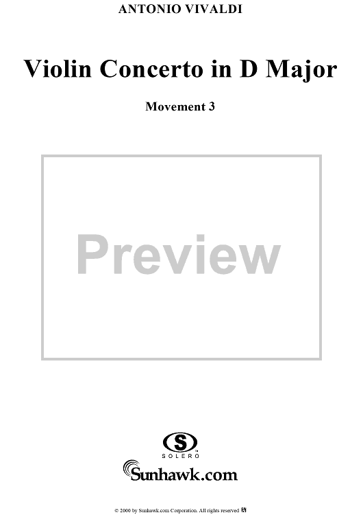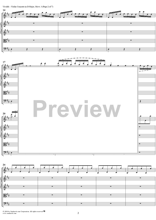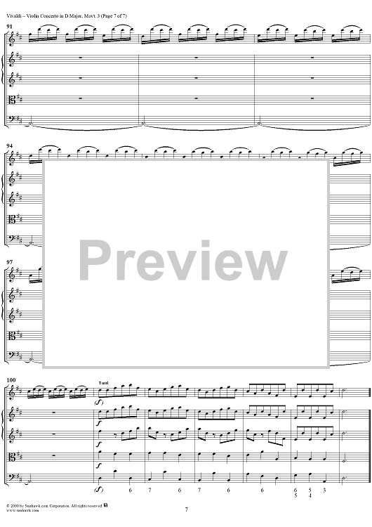 "Violin Concerto in D Major, Movt. 3 Op. 7 No. 12 RV214 - Score" Sheet Music by Antonio Vivaldi