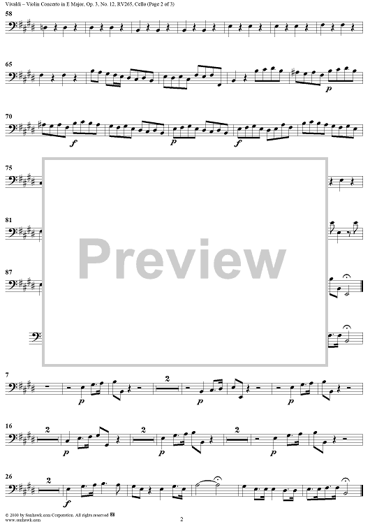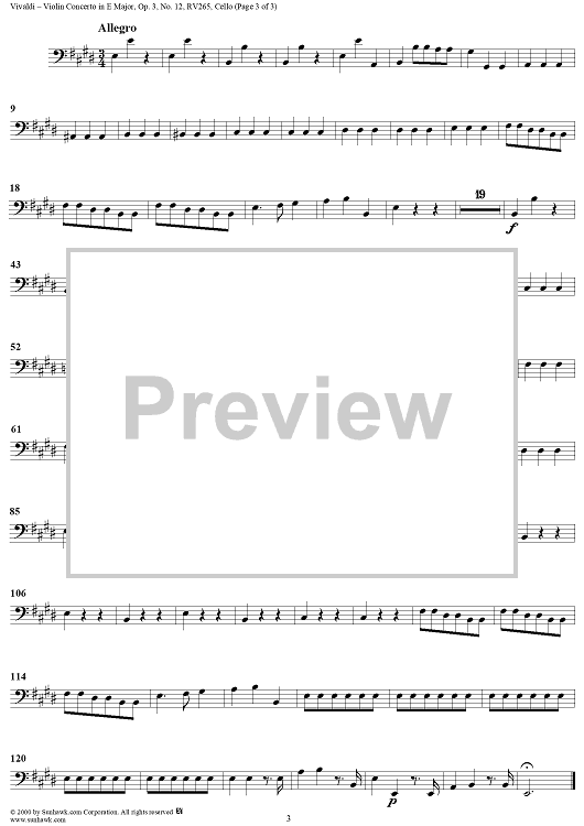 Digital Sheet Music for Violin Concerto in E Major - from "L'Estro Armonico" - Op. 3/12 (RV265) - Cello by Antonio Vivaldi scored for String Orchestra; id:262099