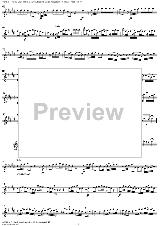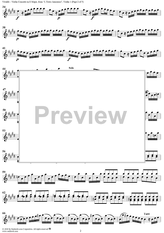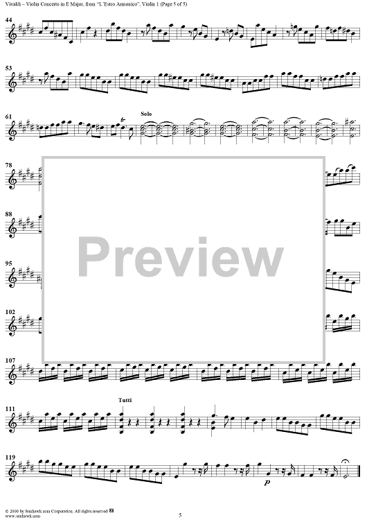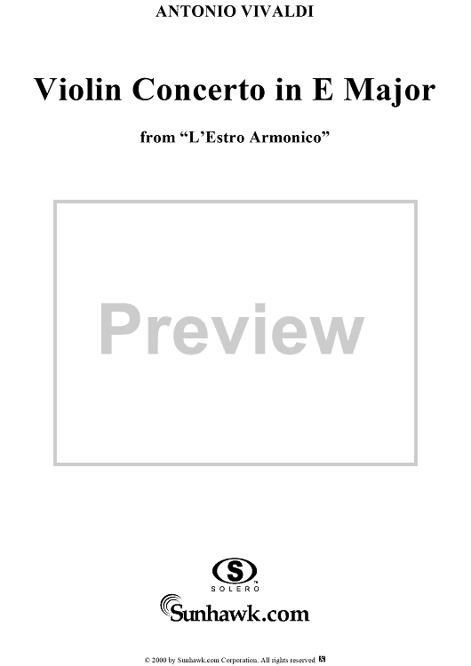 Digital Sheet Music for Violin Concerto in E Major - from "L'Estro Armonico" - Op. 3/12 (RV265) - Violin 1 by Antonio Vivaldi scored for String Orchestra; id:262094