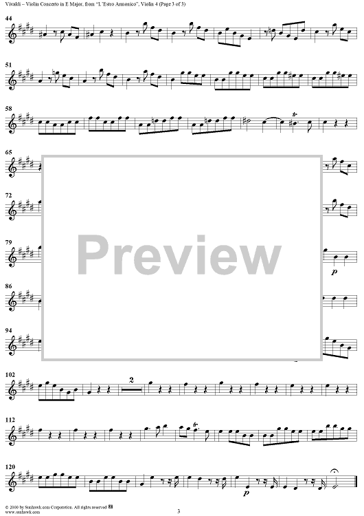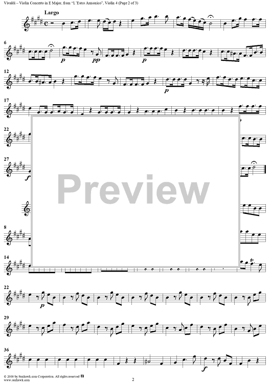 Digital Sheet Music for Violin Concerto in E Major - from "L'Estro Armonico" - Op. 3/12 (RV265) - Violin 4 by Antonio Vivaldi scored for String Orchestra; id:262096