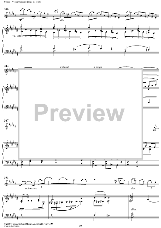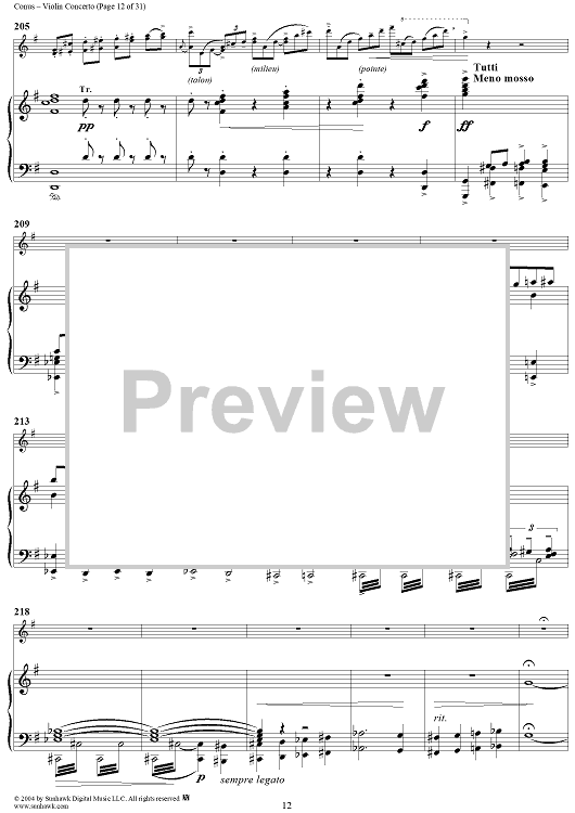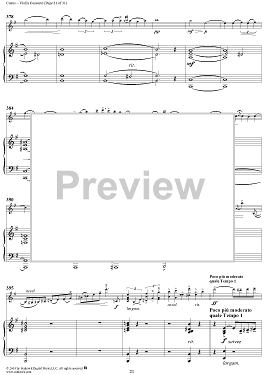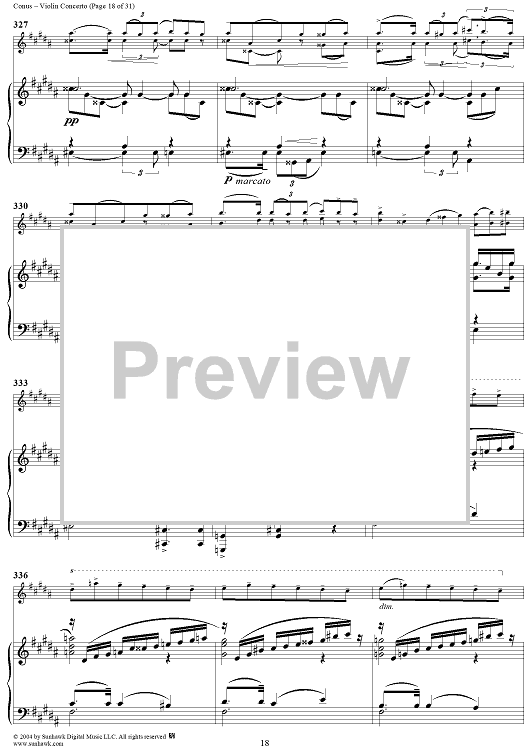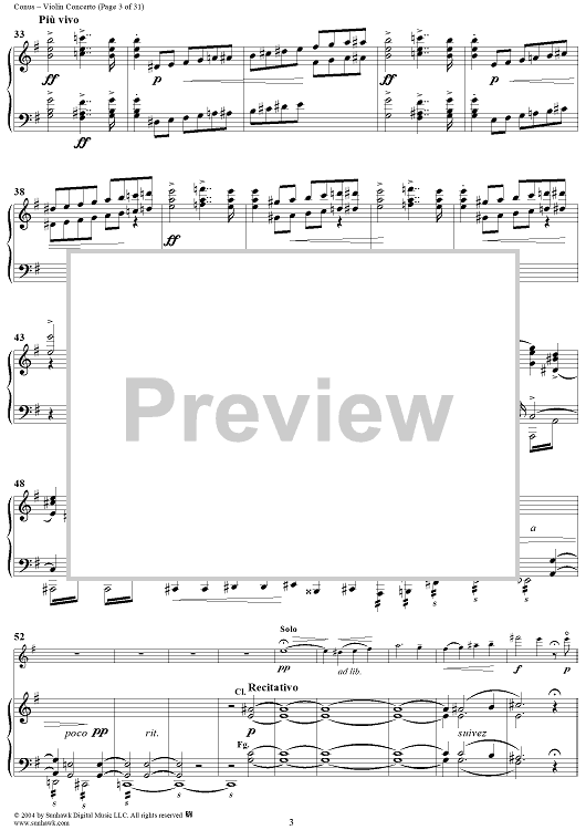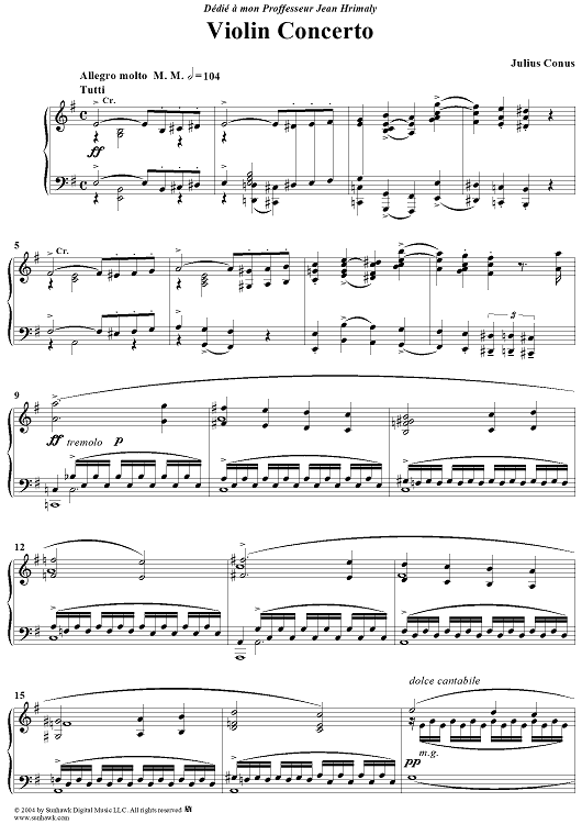 Digital Sheet Music for Violin Concerto in E Minor - Piano Score by Julius Conus scored for Violin/Piano; id:303996