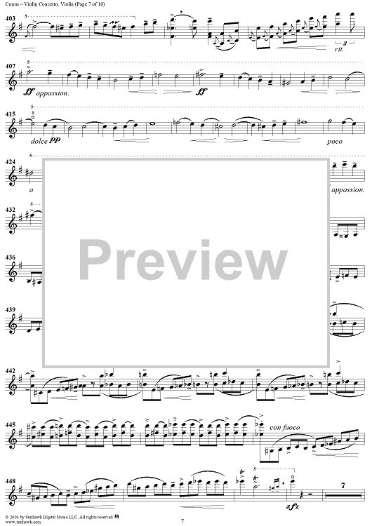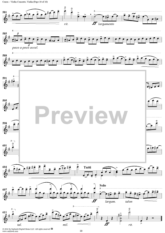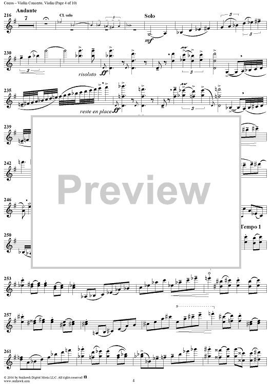 Digital Sheet Music for Violin Concerto in E Minor - Violin by Julius Conus scored for Violin/Piano; id:303995