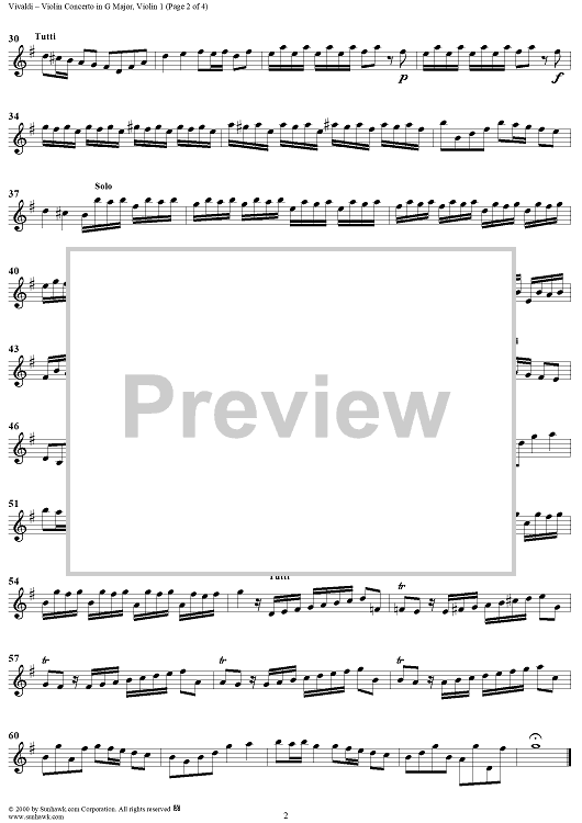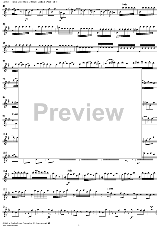 "Violin Concerto in G Major - from "L'Estro Armonico" - Op. 3/3 (RV310) - Violin 1" Sheet Music by Antonio Vivaldi