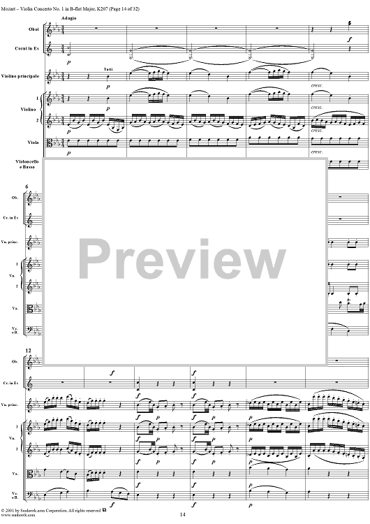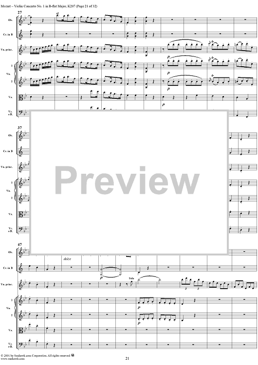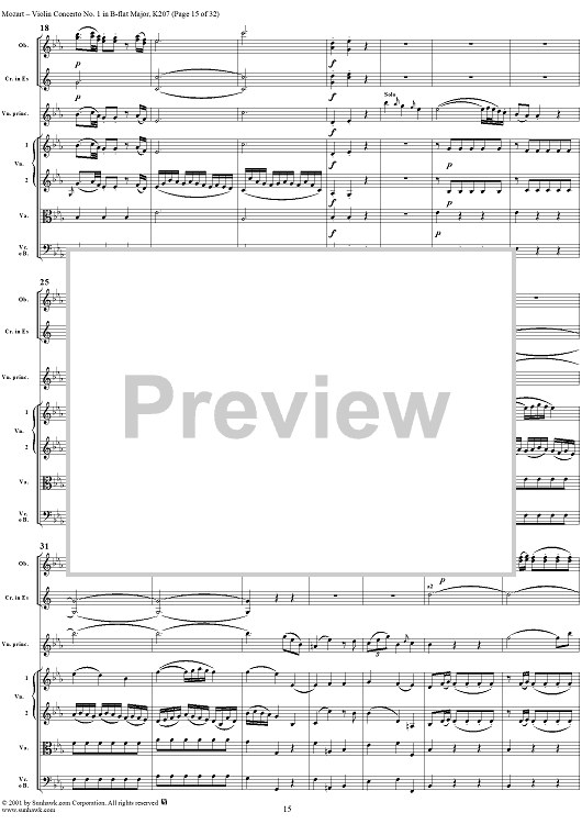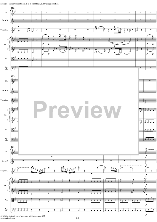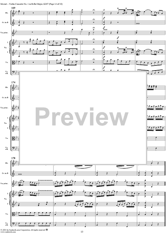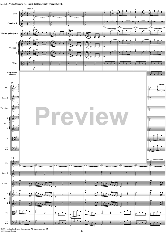 Digital Sheet Music for Violin Concerto No. 1 - Full Score by Wolfgang Amadeus Mozart scored for Violin/Orchestra; id:242023