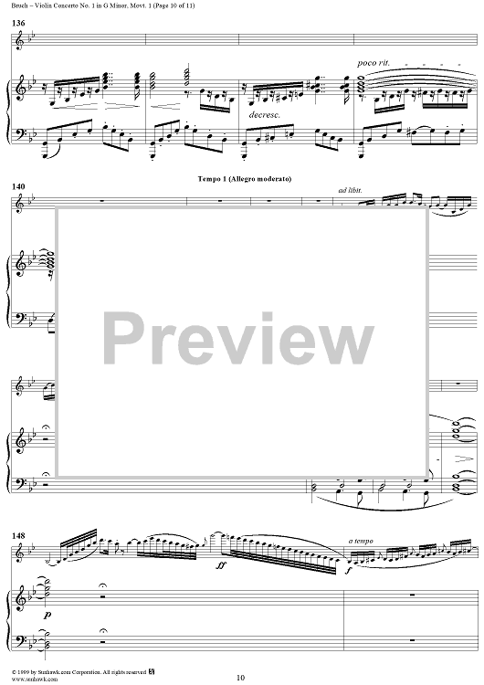 Digital Sheet Music for Violin Concerto No. 1, Movement 1 - Piano Score by Max Bruch scored for Violin/Piano; id:119134
