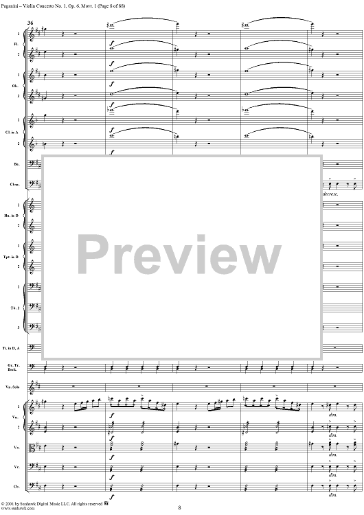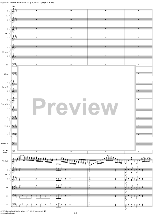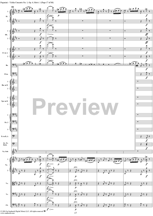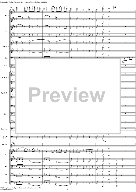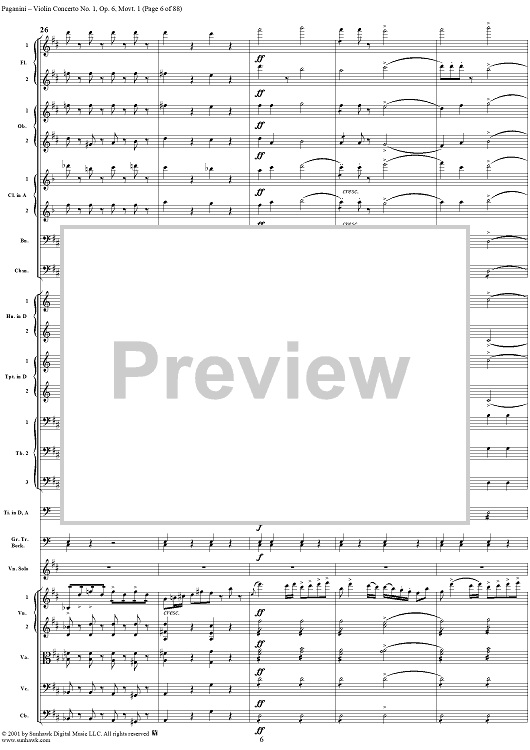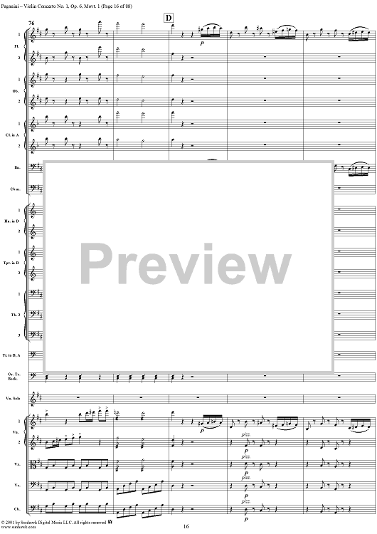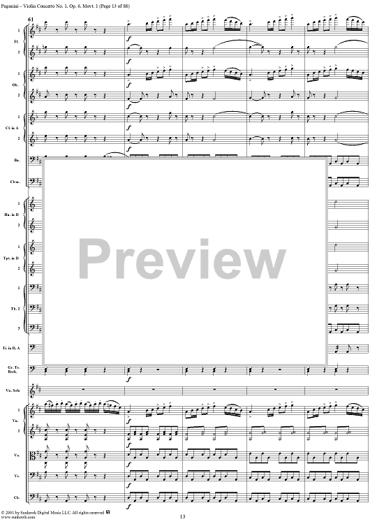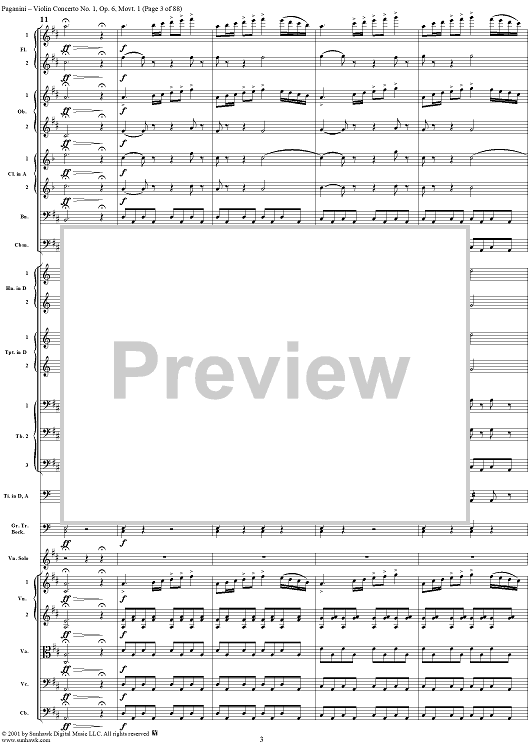Digital Sheet Music for Violin Concerto no. 1, op. 6, movt. 1 - Full Score by Niccolò Paganini scored for Violin/Orchestra; id:254561