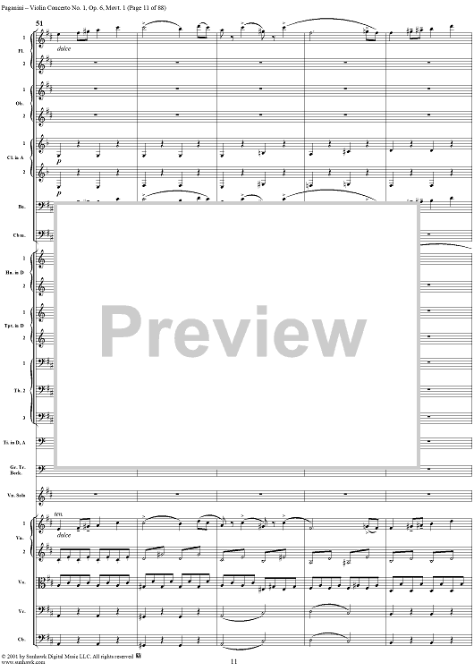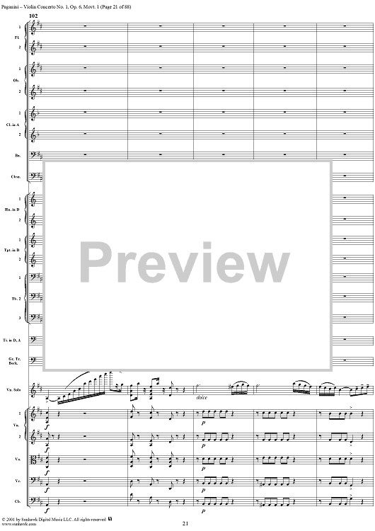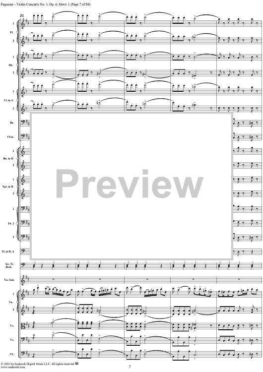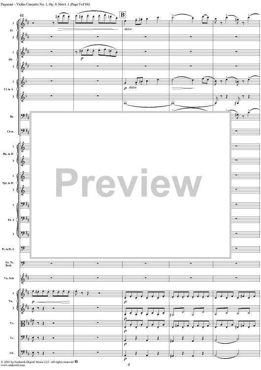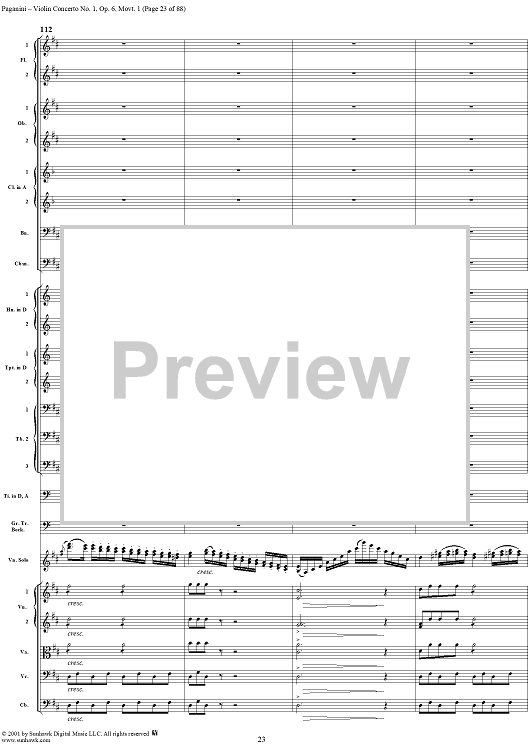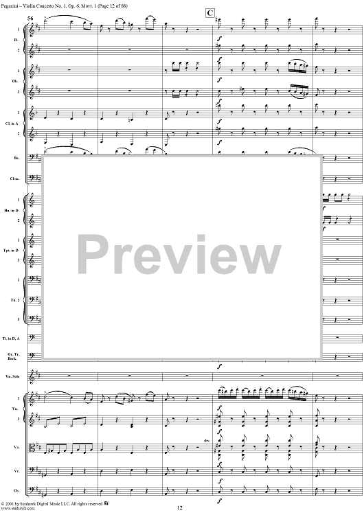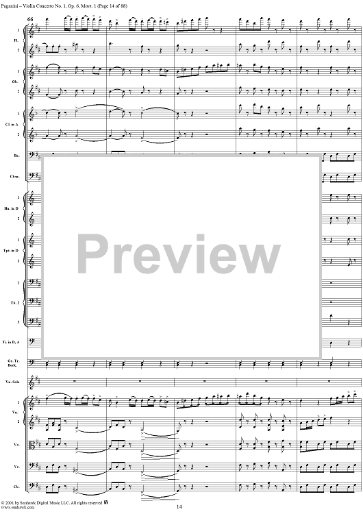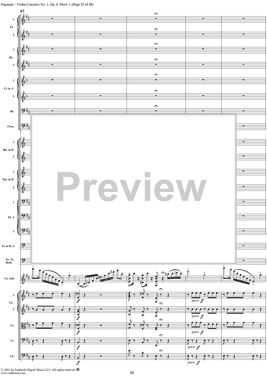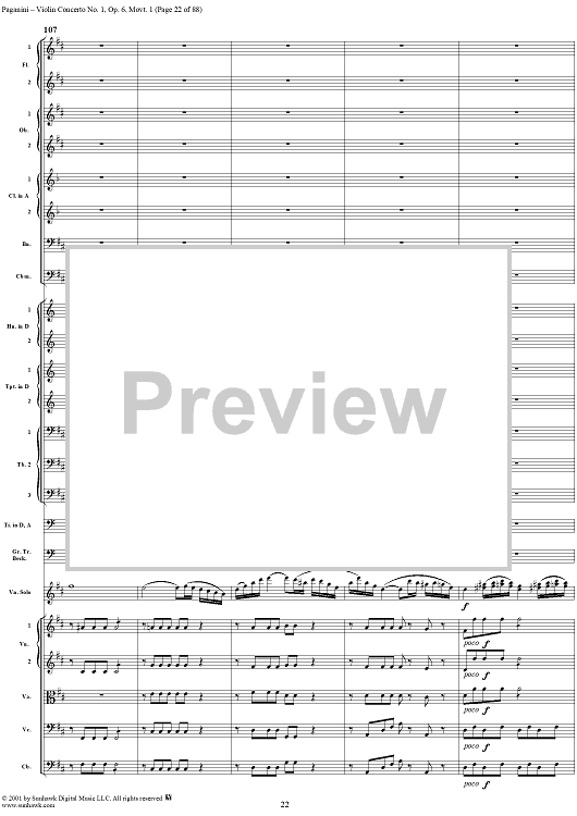 Digital Sheet Music for Violin Concerto no. 1, op. 6, movt. 1 - Full Score by Niccolò Paganini scored for Violin/Orchestra; id:254561