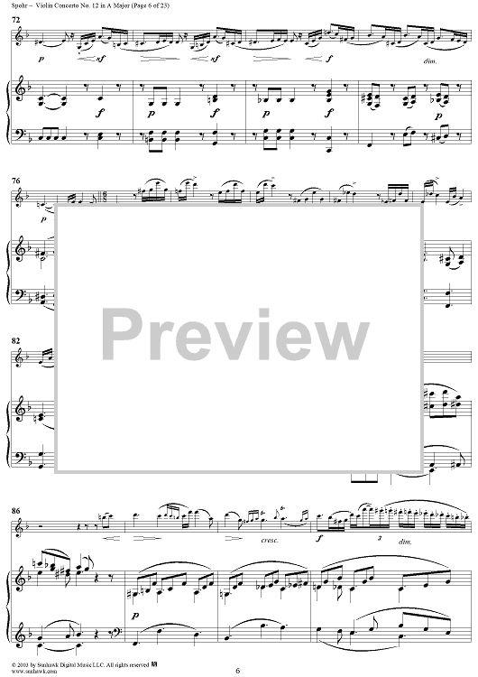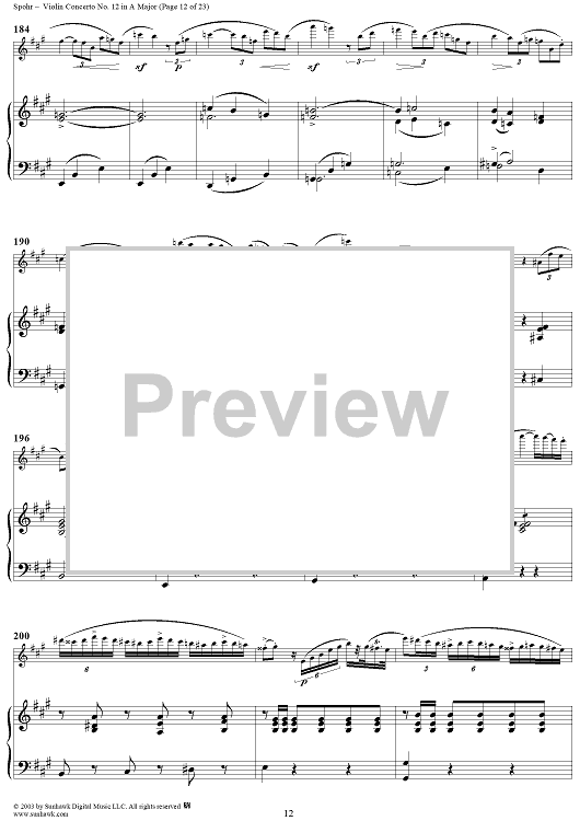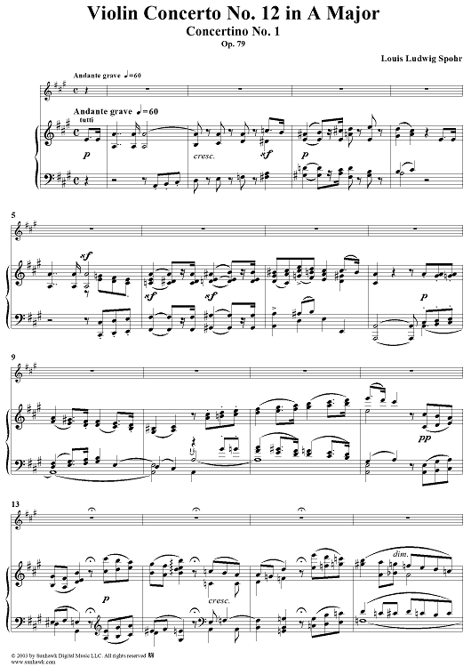Digital Sheet Music for Violin Concerto No. 12 in A Major, Op. 79 - Piano Score by Louis Ludwig Spohr scored for Violin/Piano; id:294651