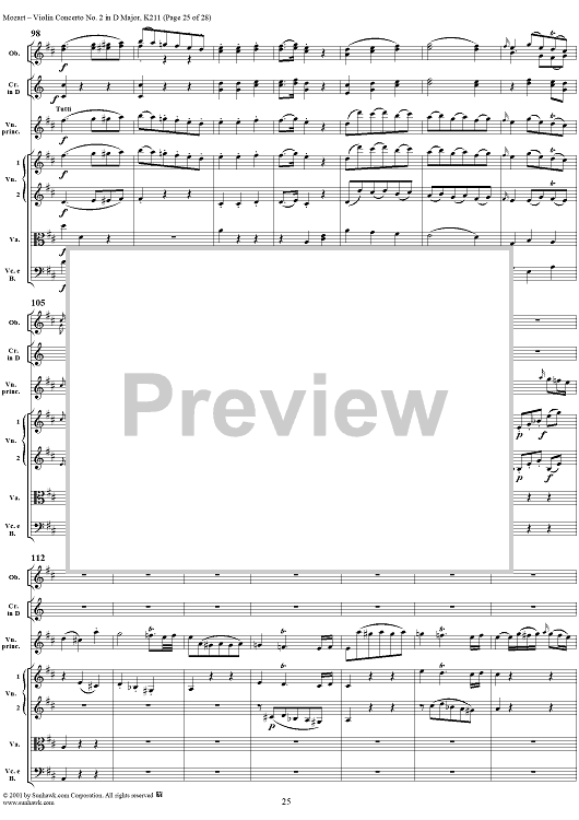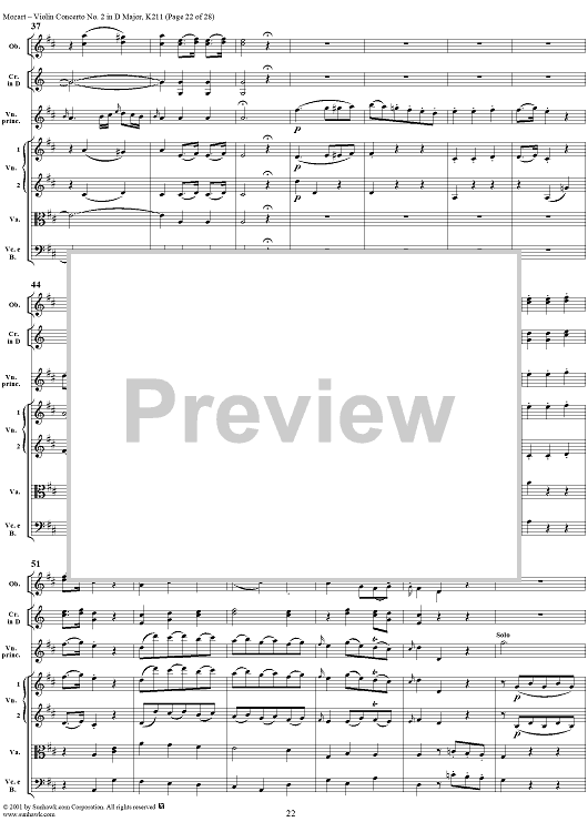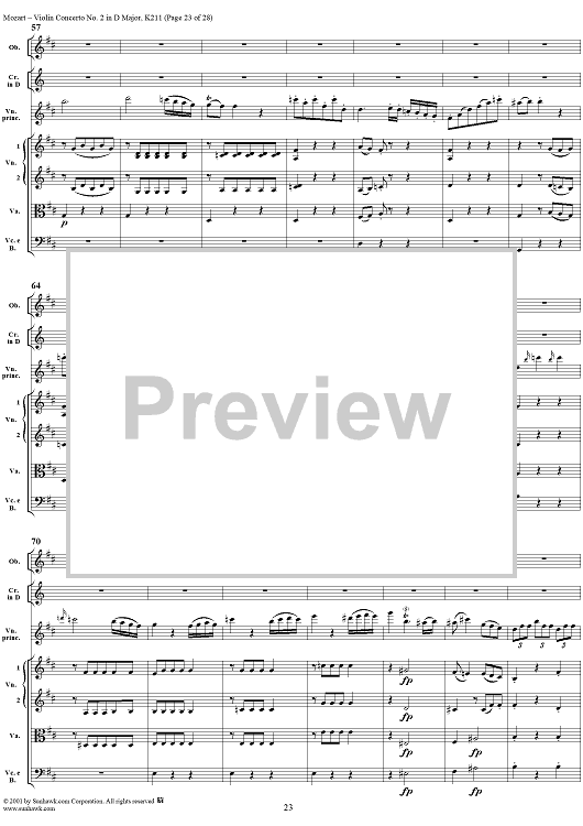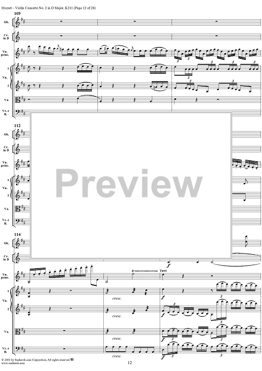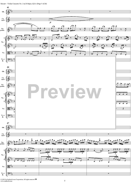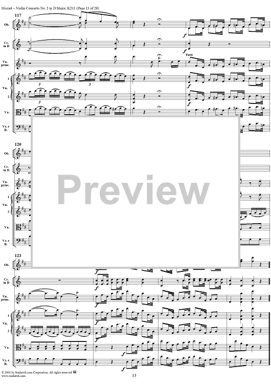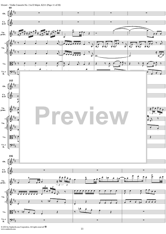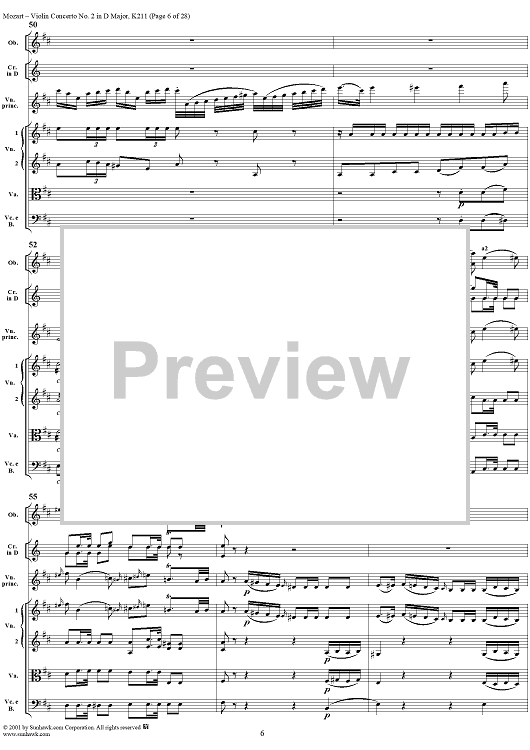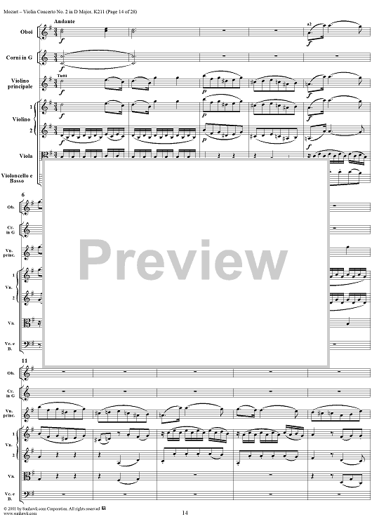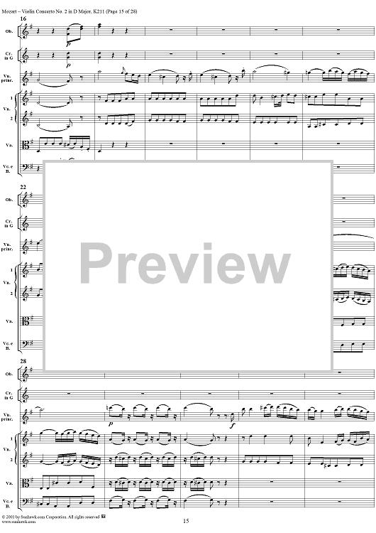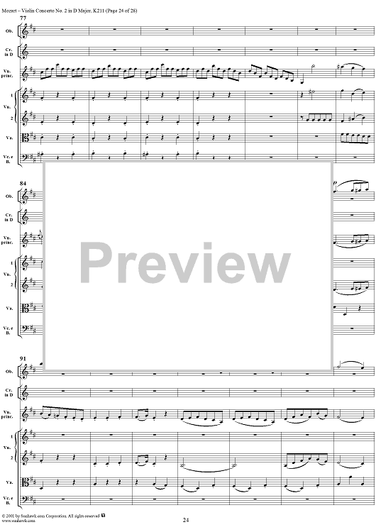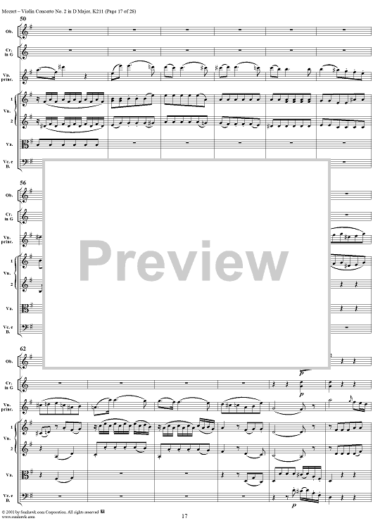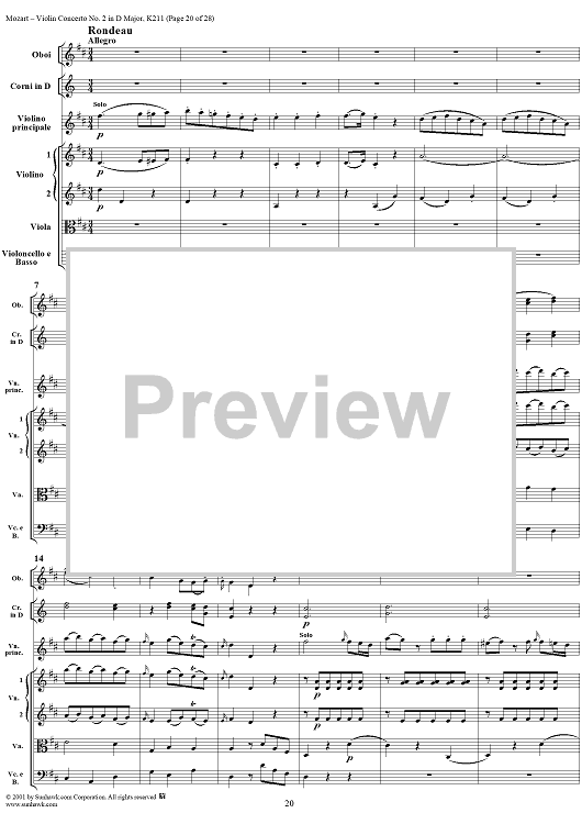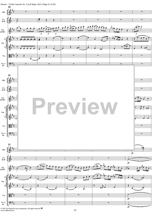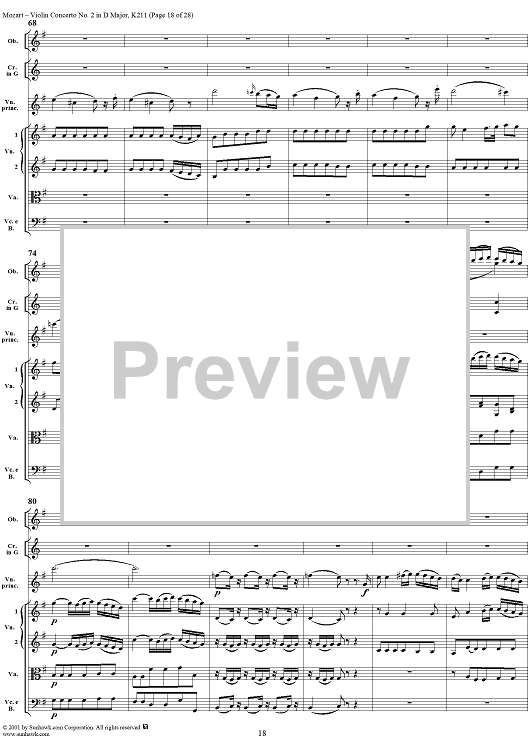 Digital Sheet Music for Violin Concerto No. 2 - Full Score by Wolfgang Amadeus Mozart scored for Violin/Orchestra; id:242024