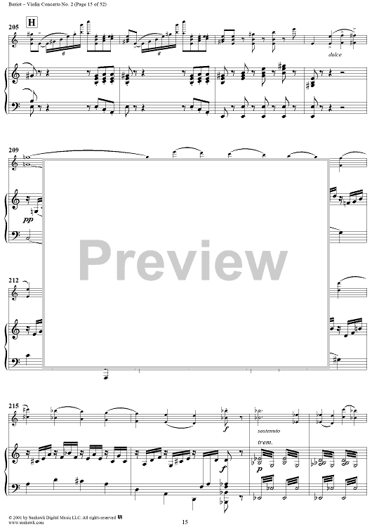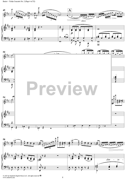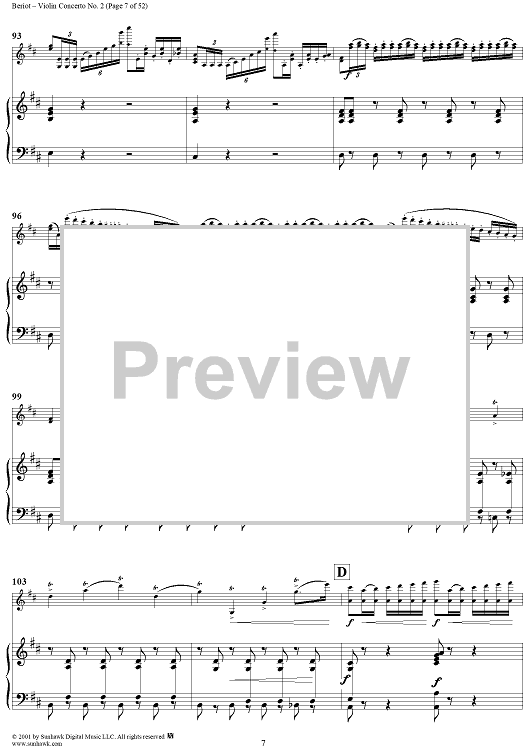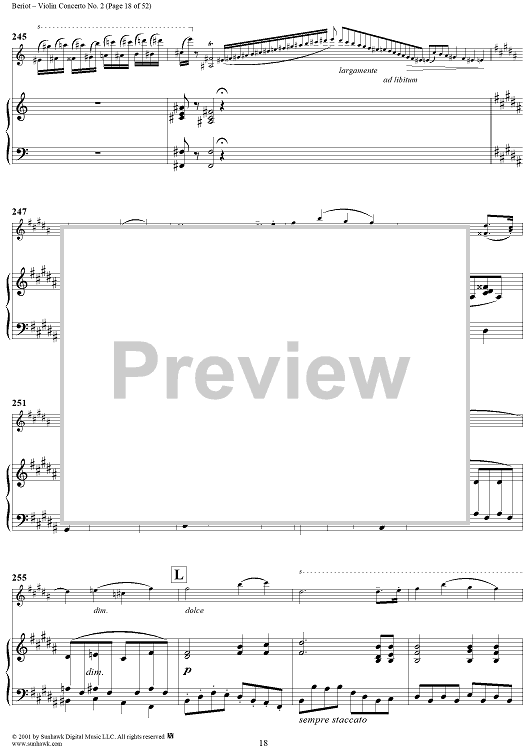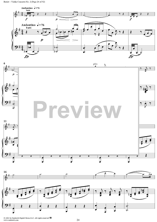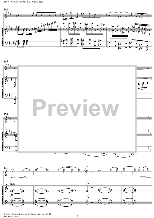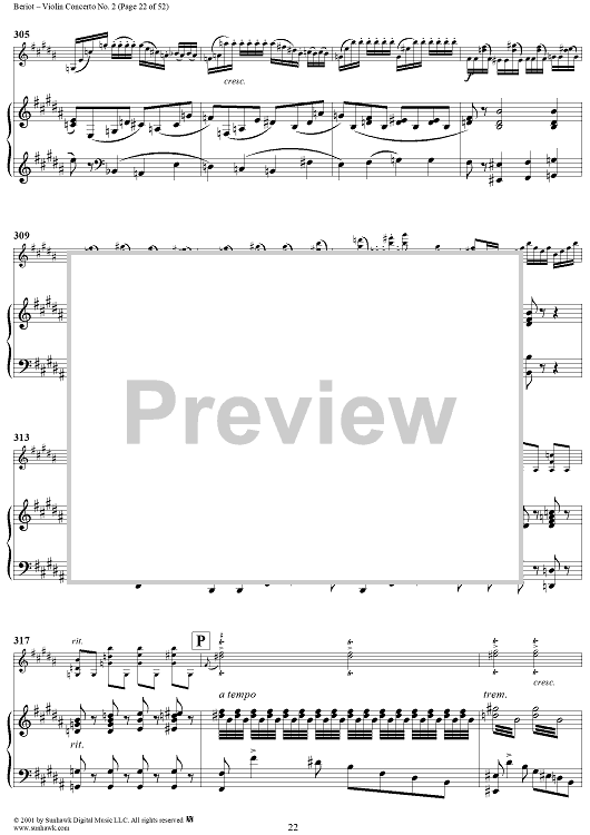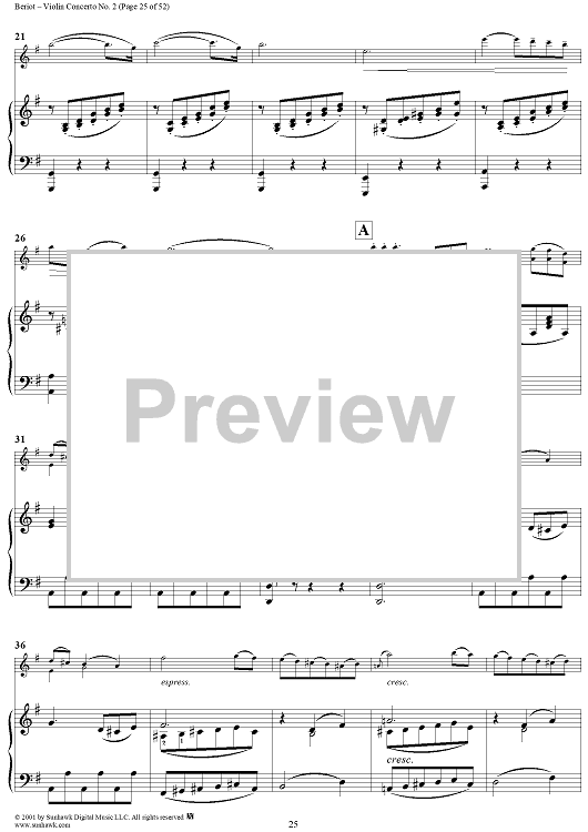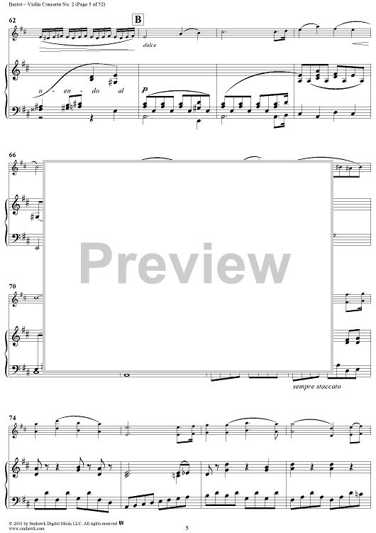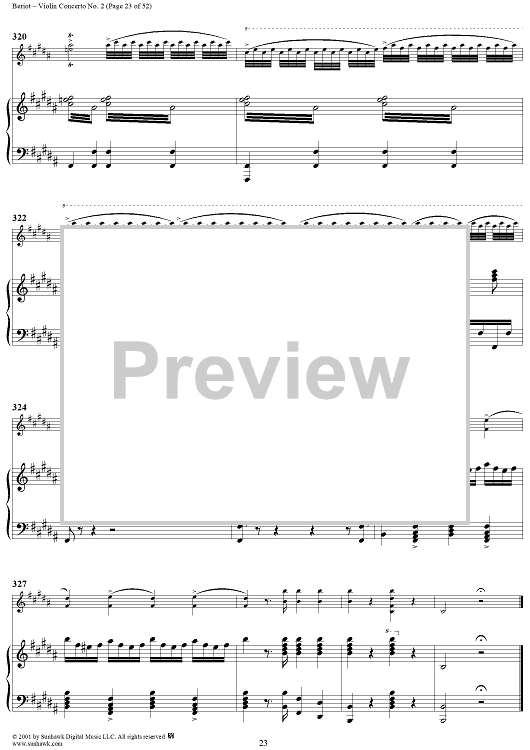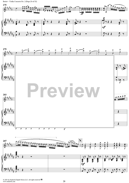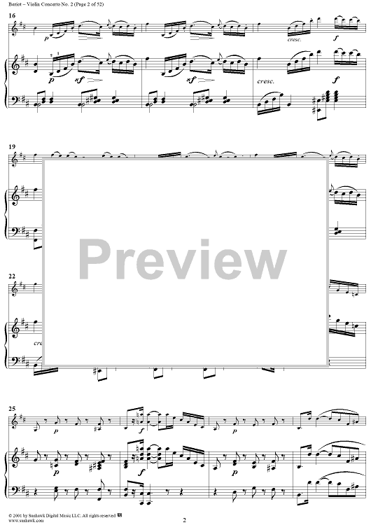 Digital Sheet Music for Violin Concerto No. 2 - Piano Score by Charles-Auguste de Bériot scored for Violin/Piano; id:273696