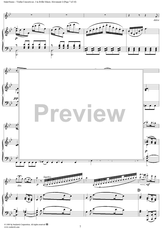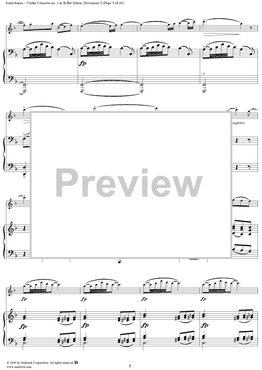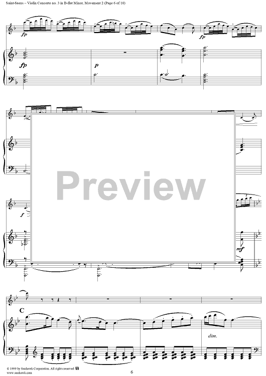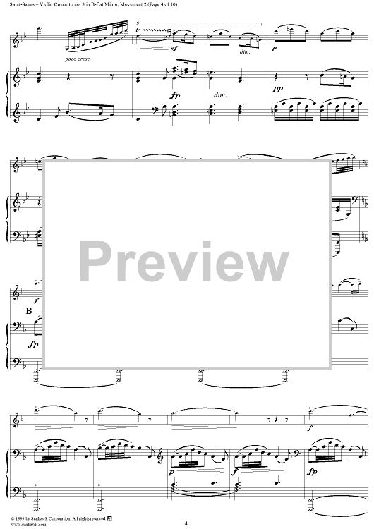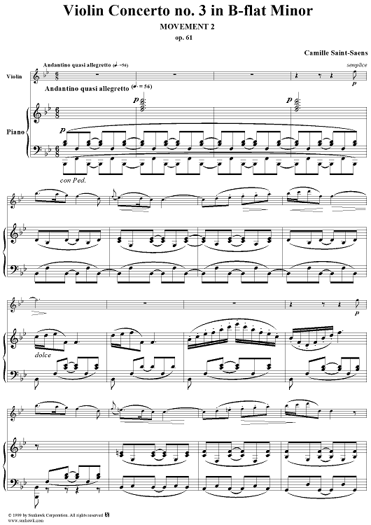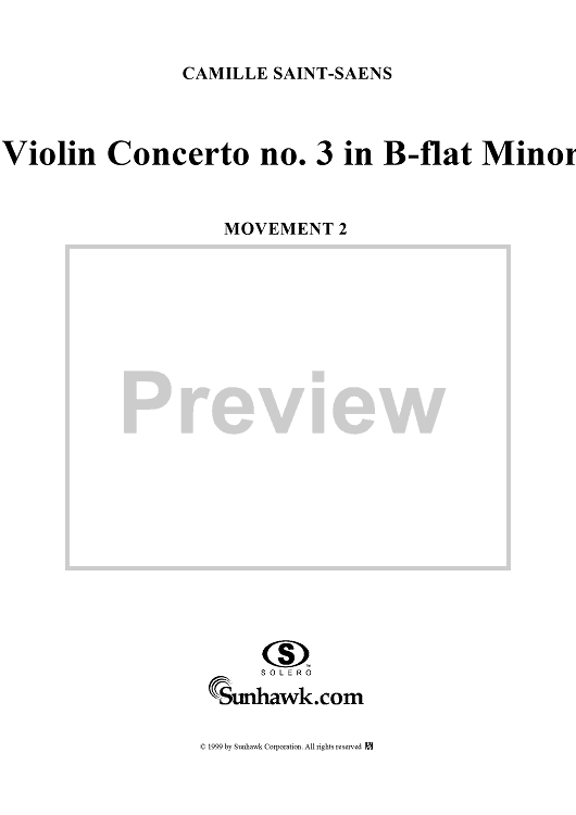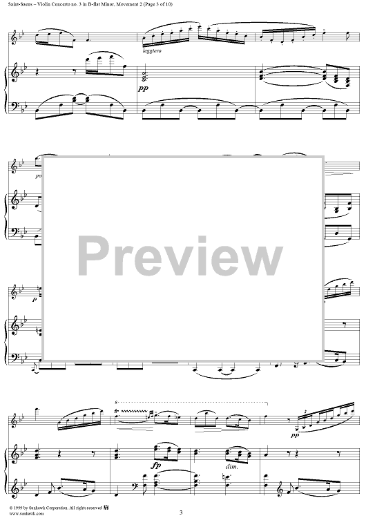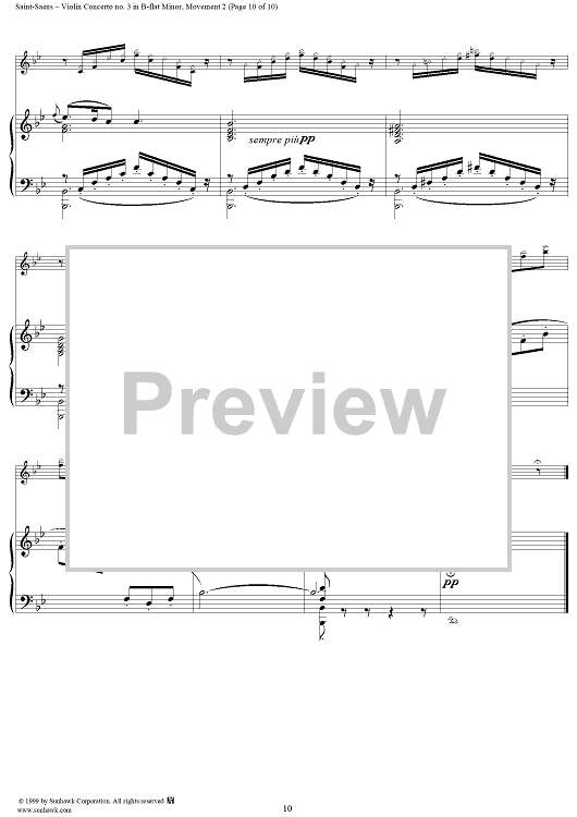 Digital Sheet Music for Violin Concerto No. 3 in B Minor, Op. 61, Mvt. 2 - Piano Score by Camille Saint-Saëns scored for Violin/Piano; id:259189