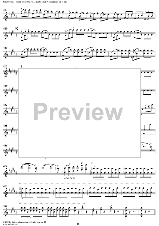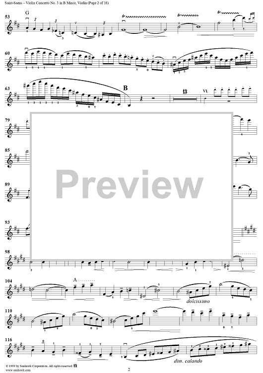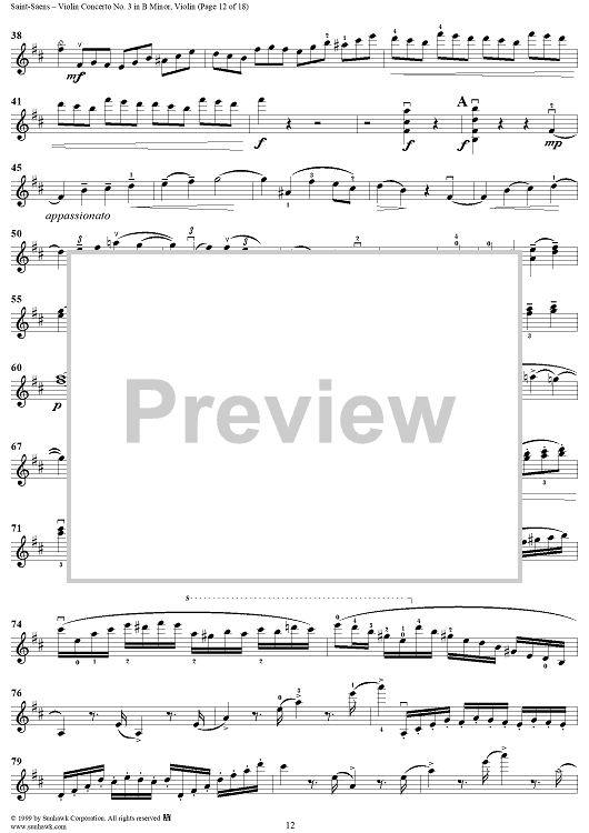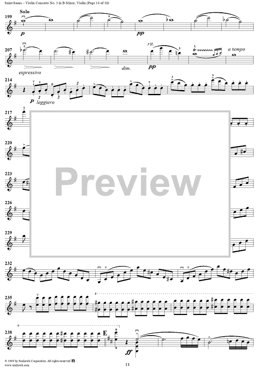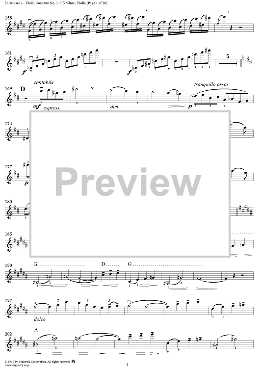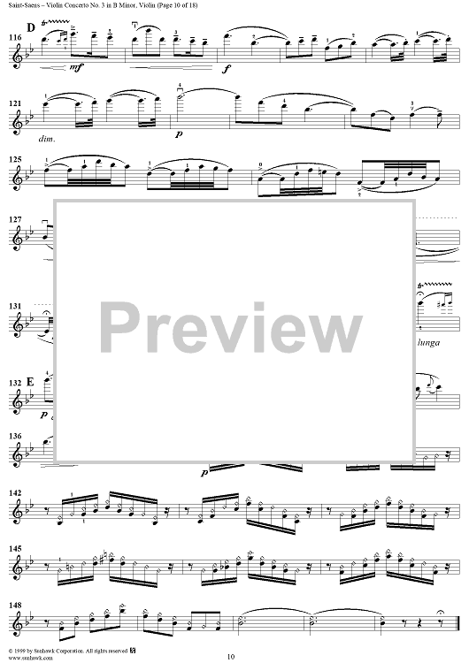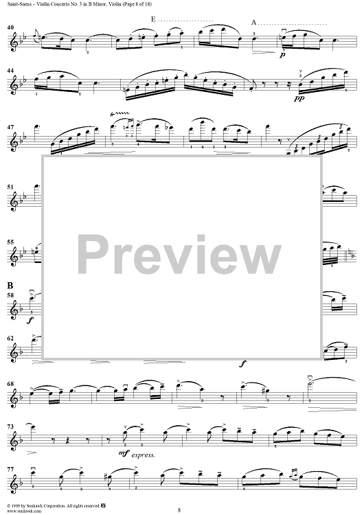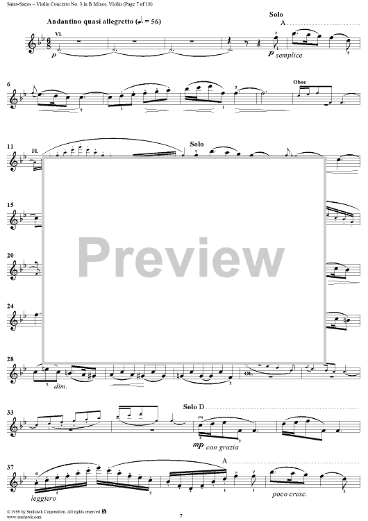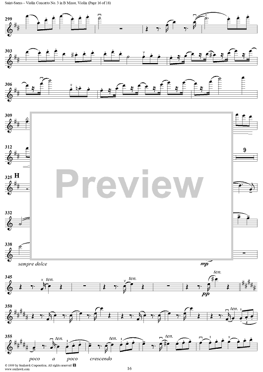 Digital Sheet Music for Violin Concerto No. 3 in B Minor, Op.61 - Violin by Camille Saint-Saëns scored for Violin/Piano; id:259232