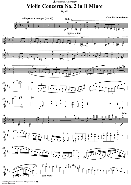 "Violin Concerto No. 3 in B Minor, Op.61 - Violin" Sheet Music by Camille Saint-Saëns