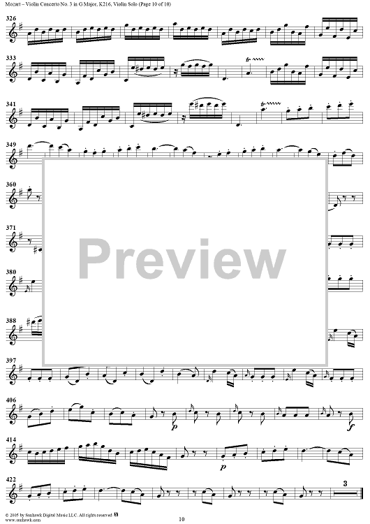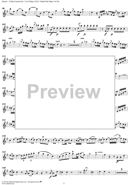 Digital Sheet Music for Violin Concerto No. 3 - Solo Violin by Wolfgang Amadeus Mozart scored for Violin/Orchestra; id:310094