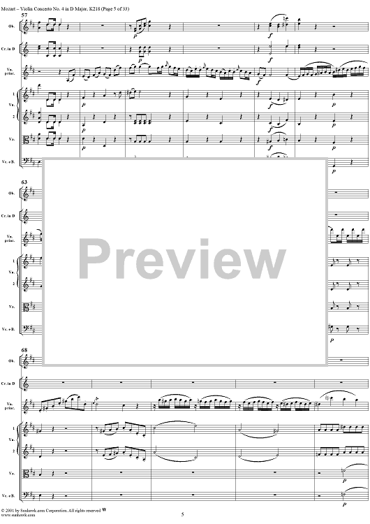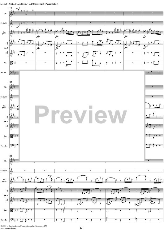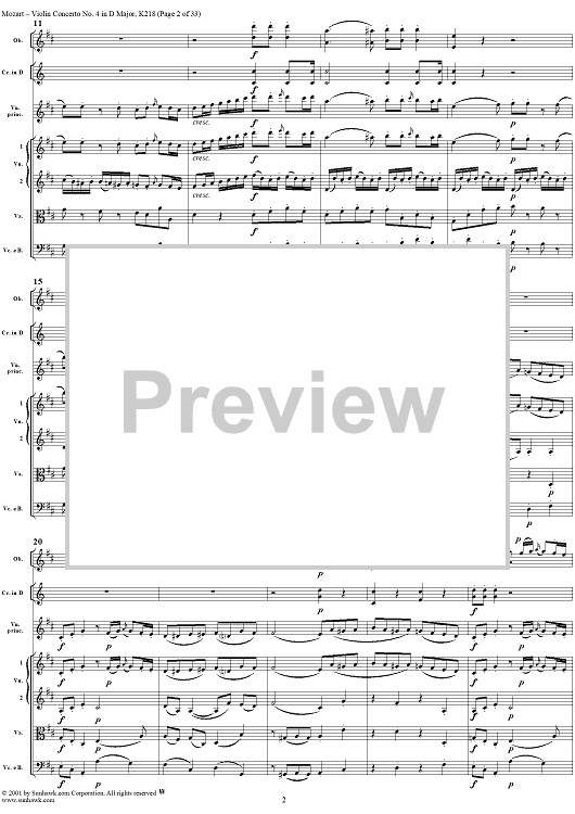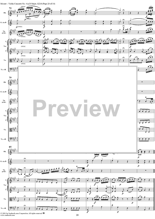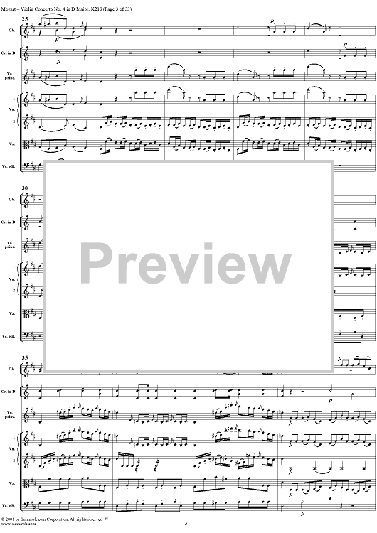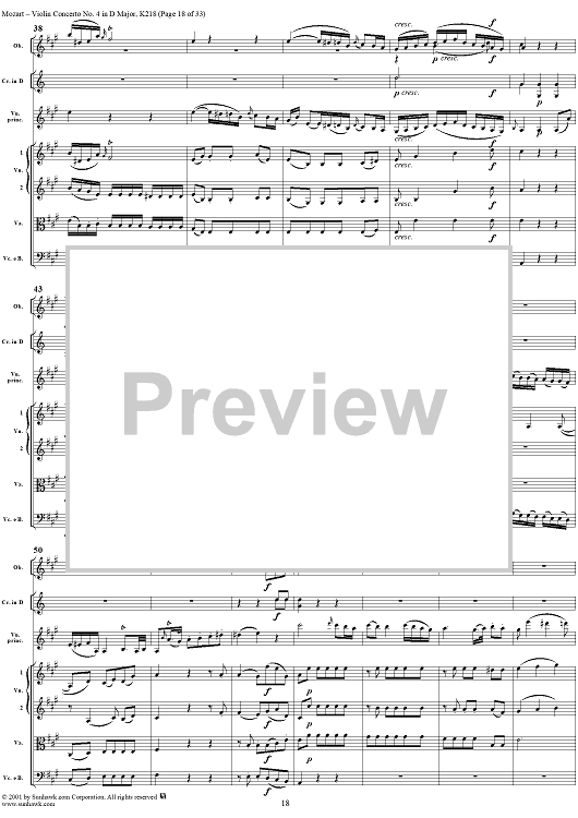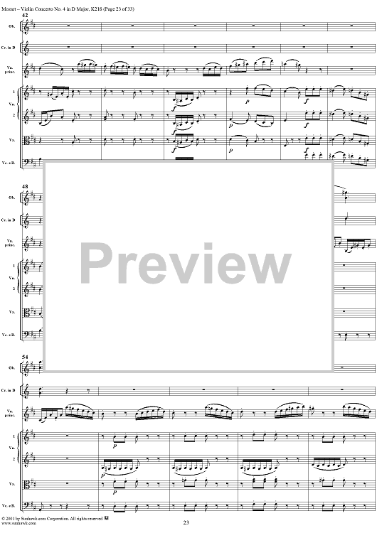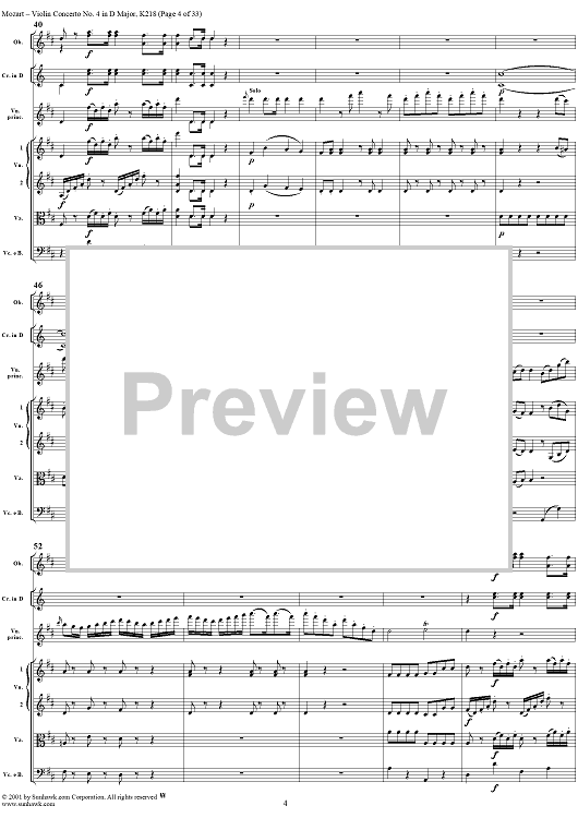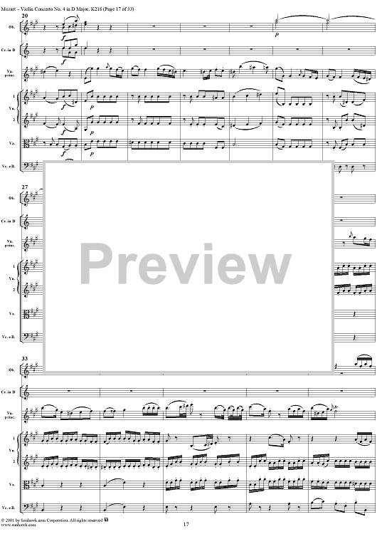 Digital Sheet Music for Violin Concerto No. 4 - Full Score by Wolfgang Amadeus Mozart scored for Violin/Orchestra; id:242026