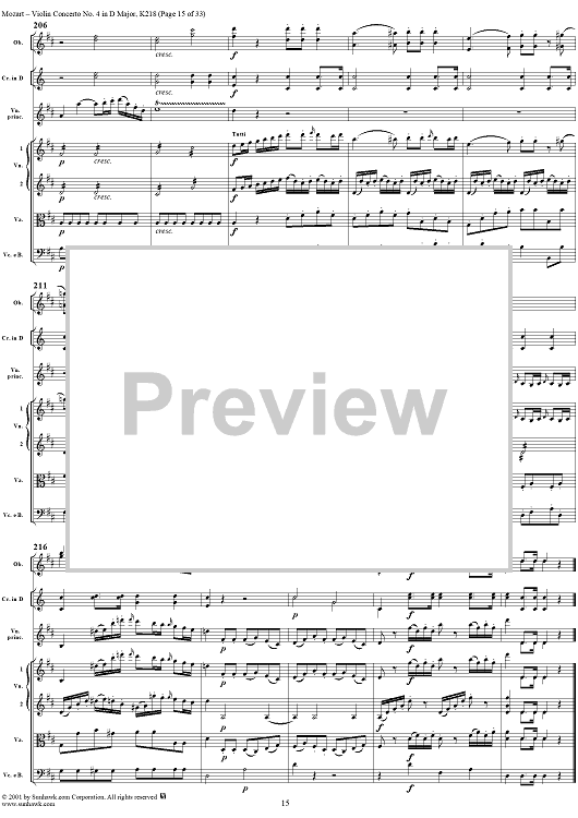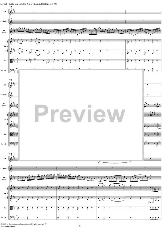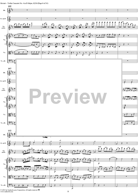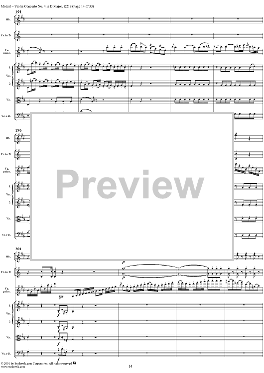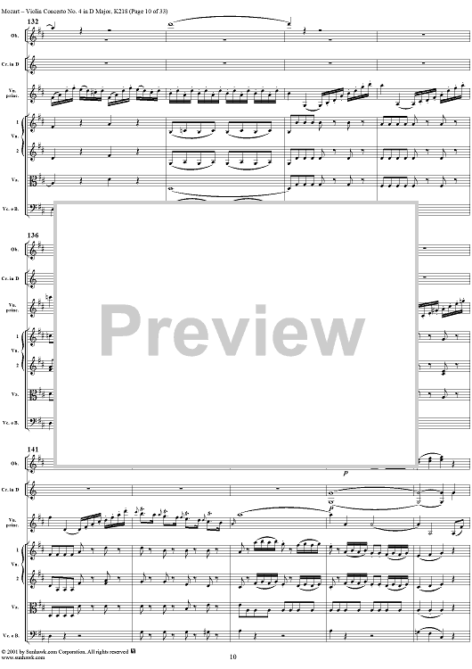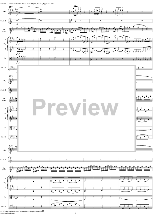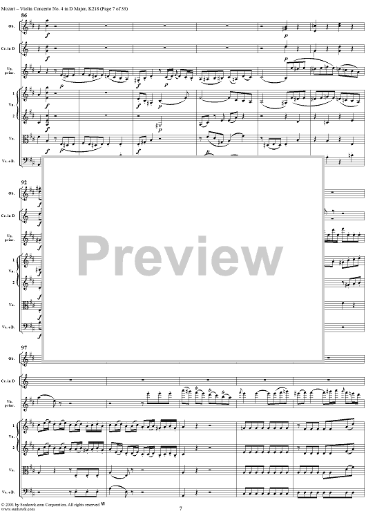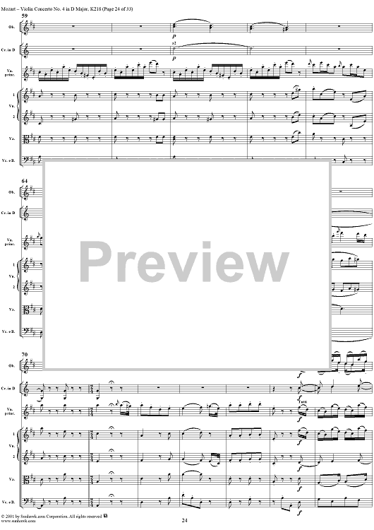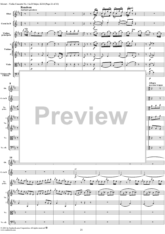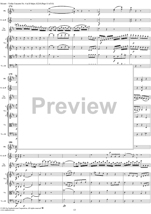Digital Sheet Music for Violin Concerto No. 4 - Full Score by Wolfgang Amadeus Mozart scored for Violin/Orchestra; id:242026