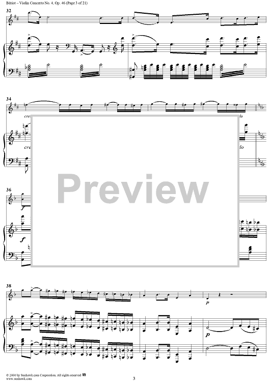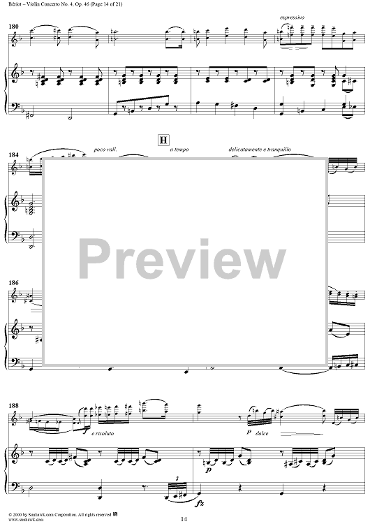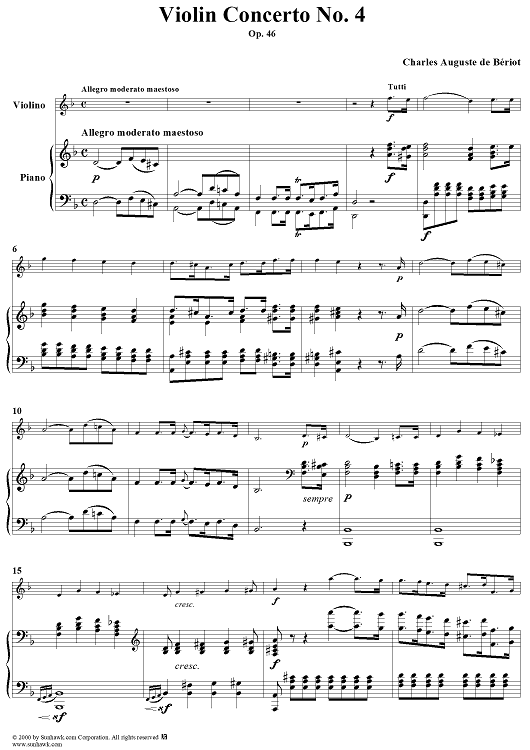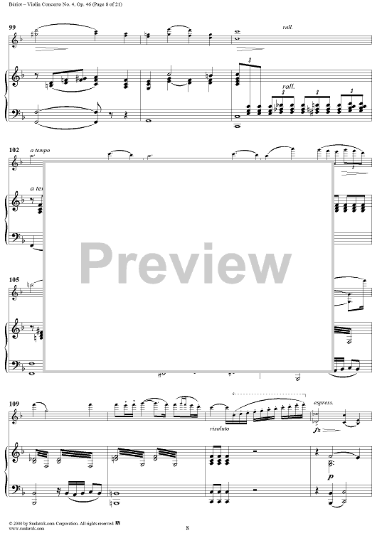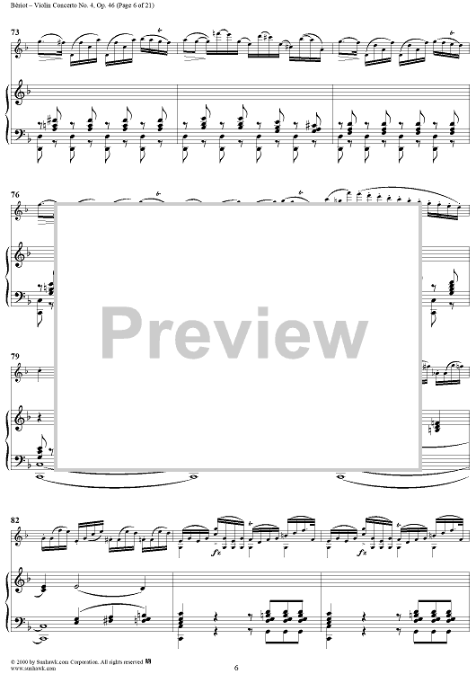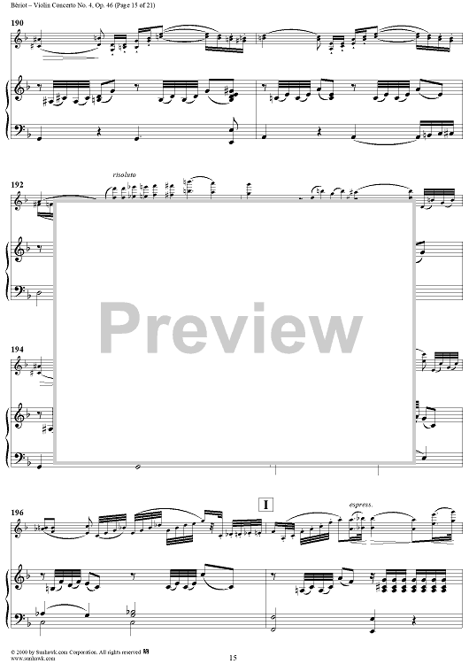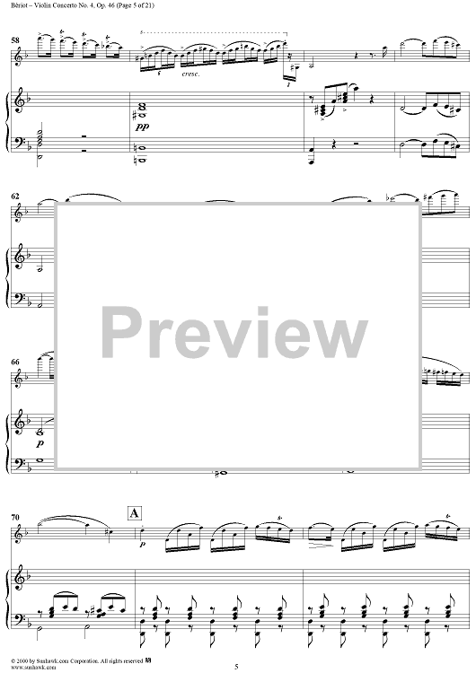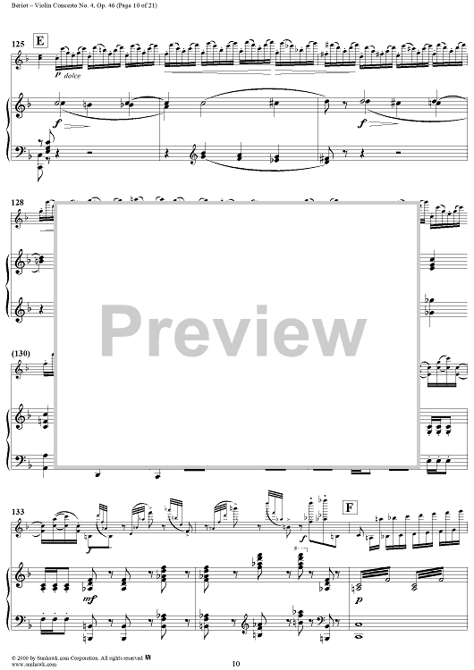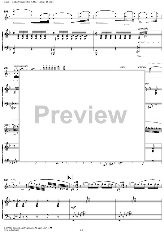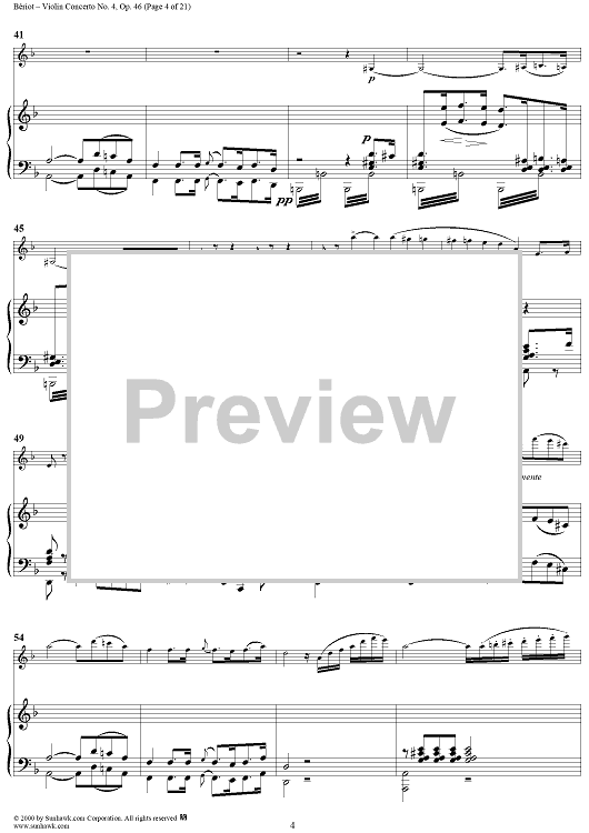 Digital Sheet Music for Violin Concerto No. 4 - Piano Score by Charles-Auguste de Bériot scored for Violin/Piano; id:241995