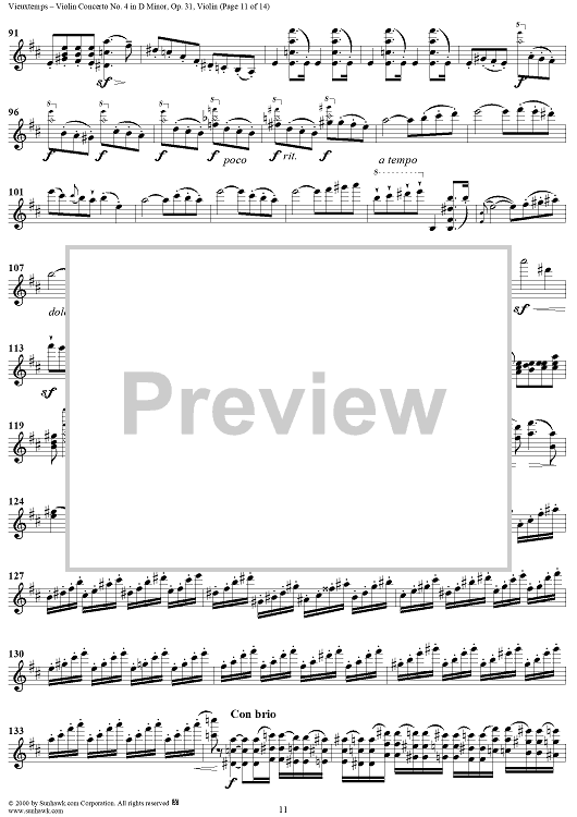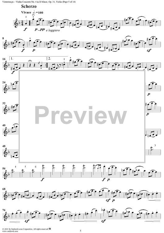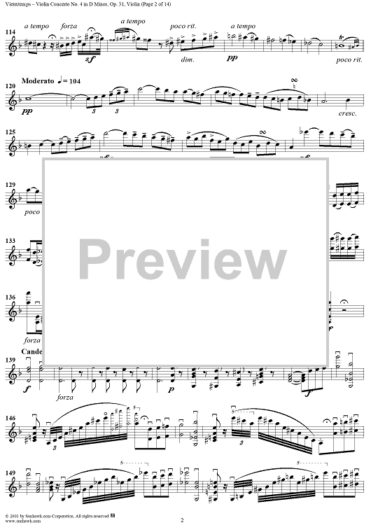 Digital Sheet Music for Violin Concerto No. 4 - Violin by Henri Vieuxtemps scored for Violin/Piano; id:264750