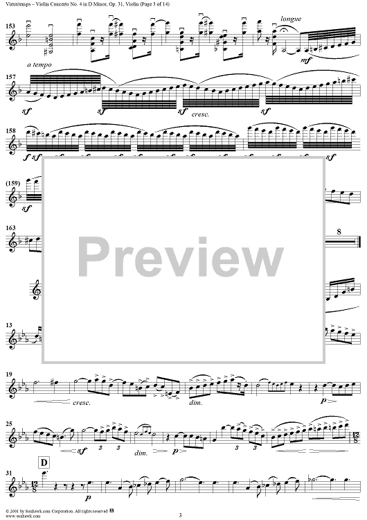 "Violin Concerto No. 4 - Violin" Sheet Music by Henri Vieuxtemps