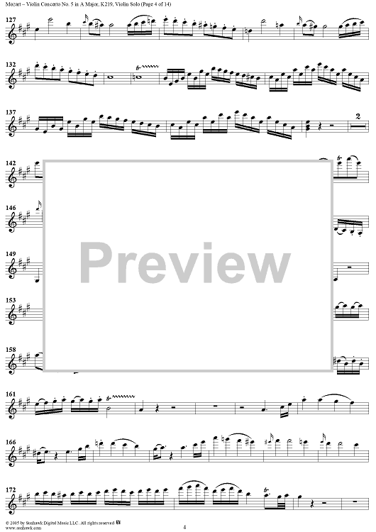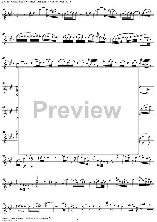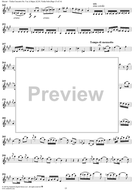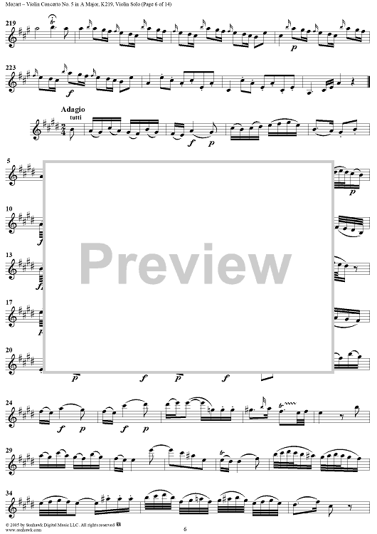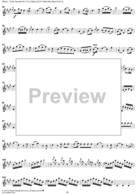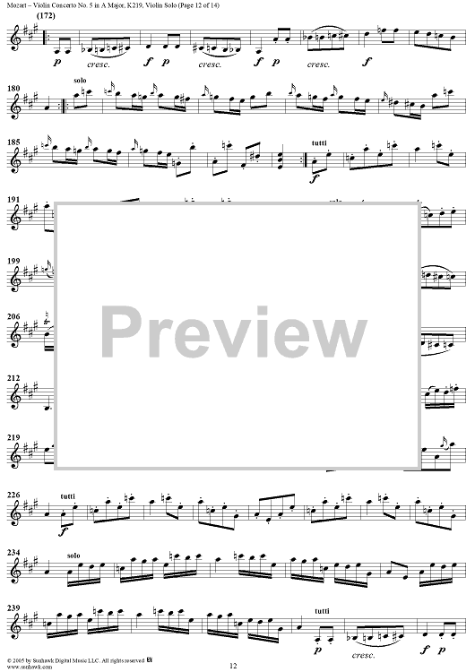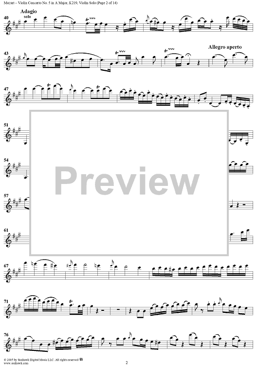 Digital Sheet Music for Violin Concerto No. 5 - Solo Violin by Wolfgang Amadeus Mozart scored for Violin/Orchestra; id:310098