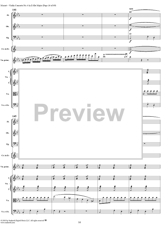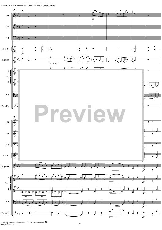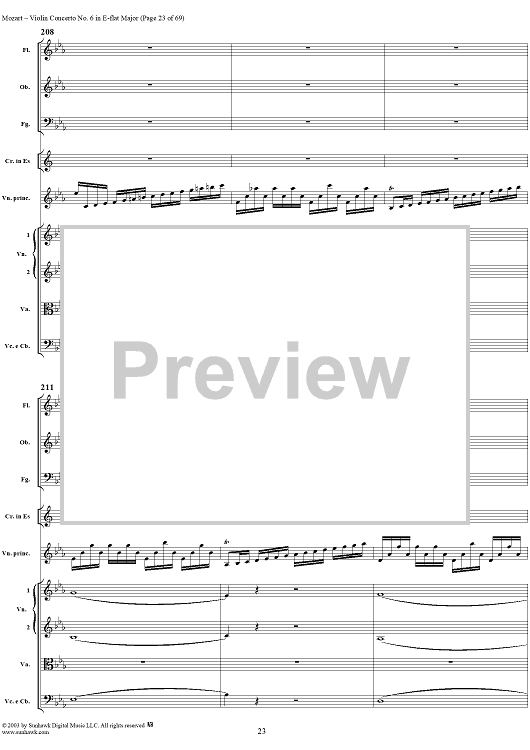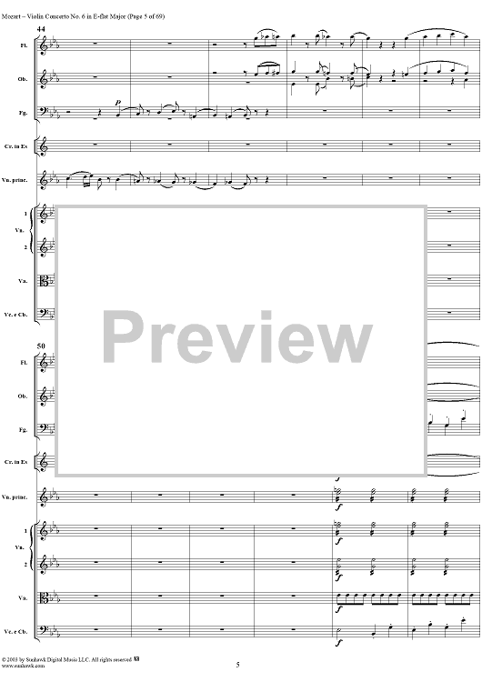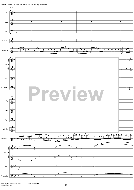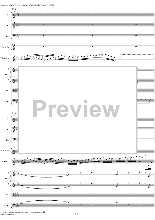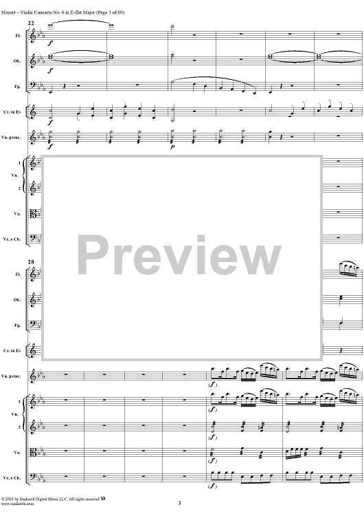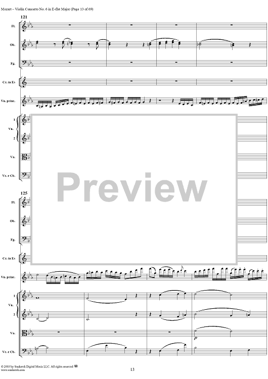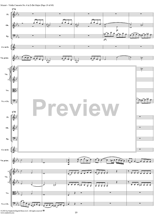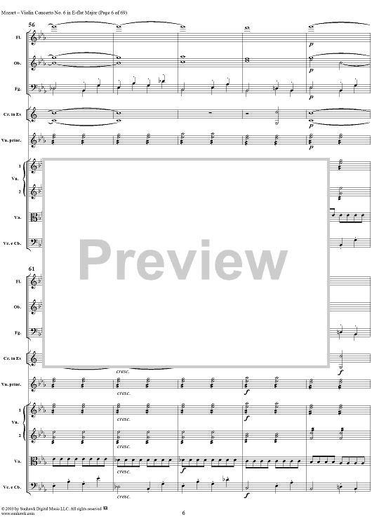 Digital Sheet Music for Violin Concerto No. 6 - Full Score by Wolfgang Amadeus Mozart scored for Violin/Orchestra; id:292351