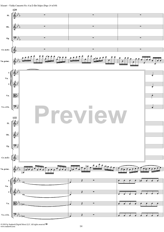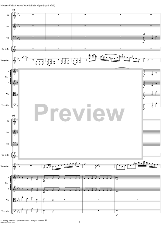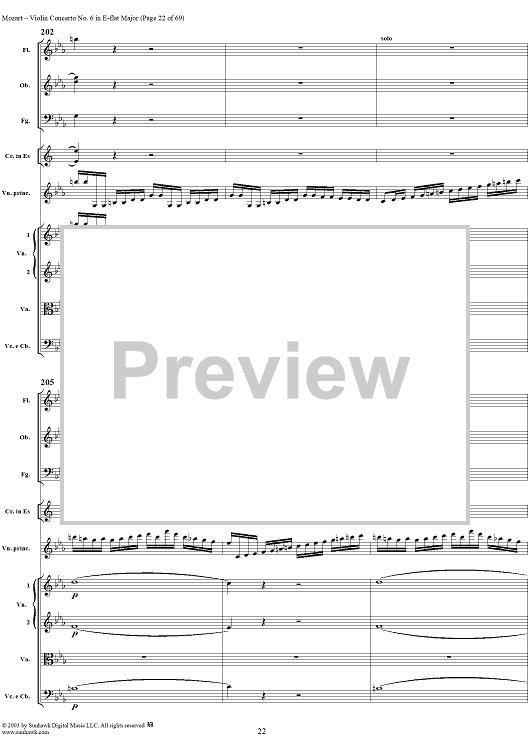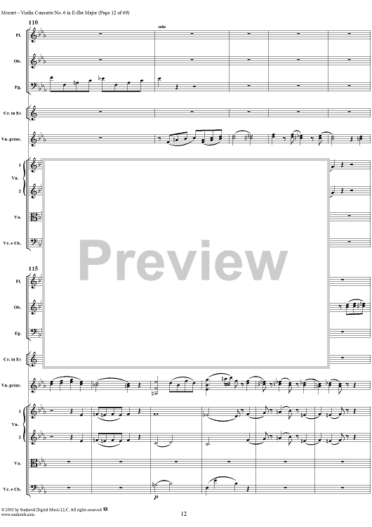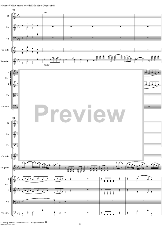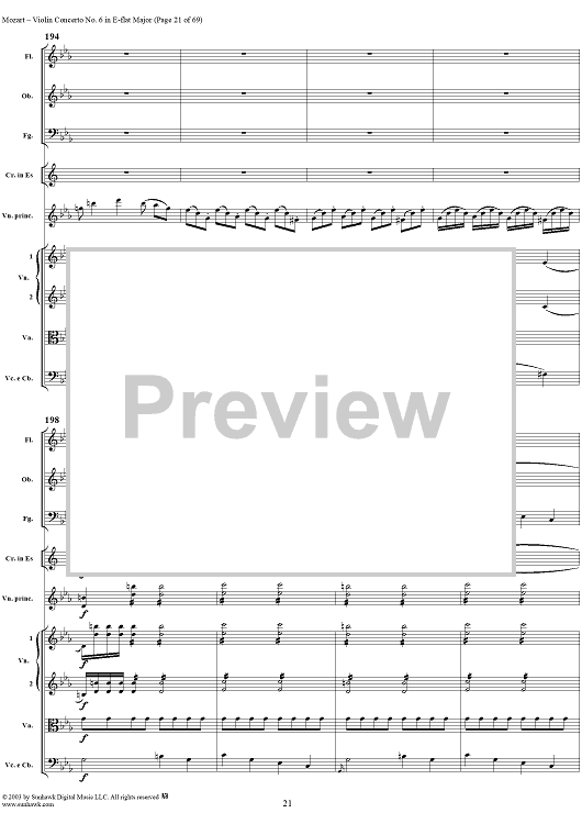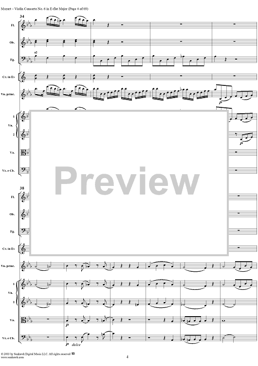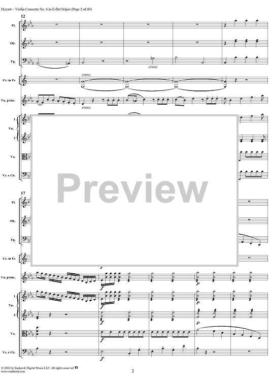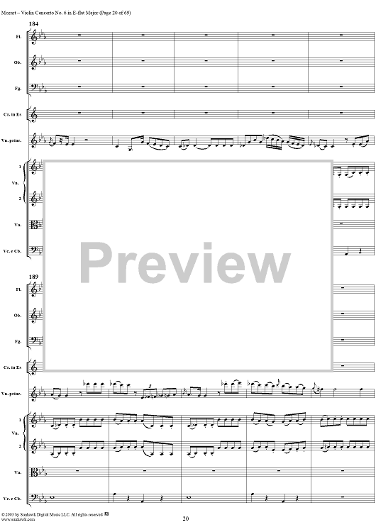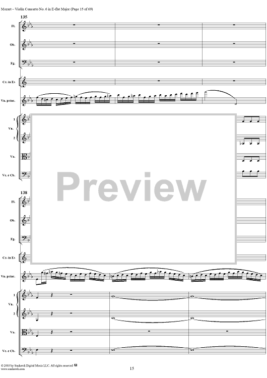 Digital Sheet Music for Violin Concerto No. 6 - Full Score by Wolfgang Amadeus Mozart scored for Violin/Orchestra; id:292351