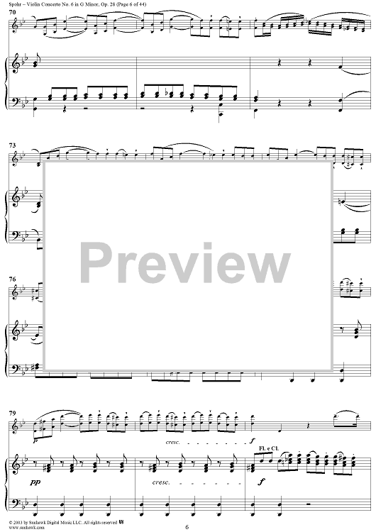 Digital Sheet Music for Violin Concerto No. 6 in G Minor, Op. 28 - Piano Score by Louis Ludwig Spohr scored for Violin/Piano; id:294650