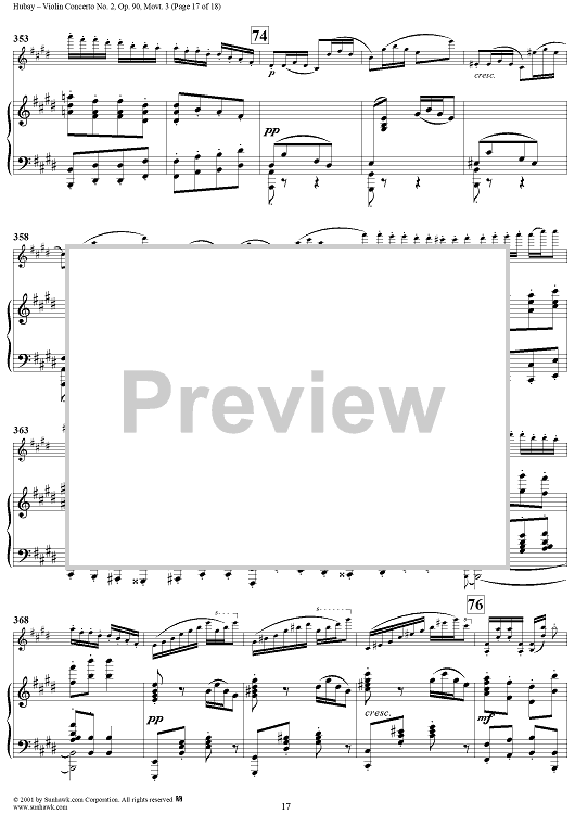 Digital Sheet Music for Violin Concerto, no.2, op. 90, movt. 3, - Piano by Jeno Hubay scored for Violin/Piano; id:266721