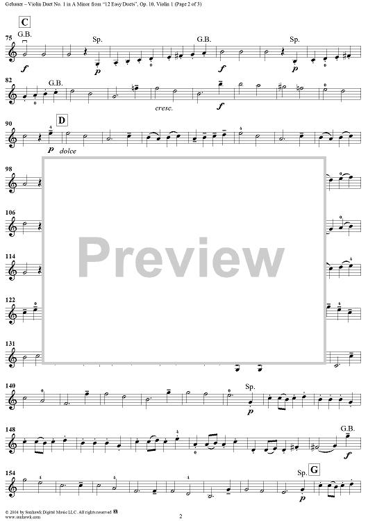 Digital Sheet Music for Violin Duet No. 1 in A Minor from "Twelve Easy Duets", Op. 10 - Violin 1 by Michel Gebauer scored for Two Violins; id:304000