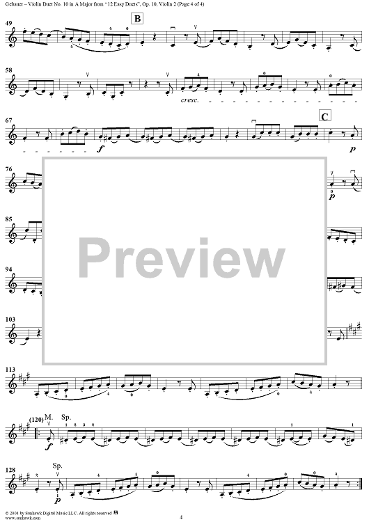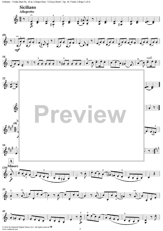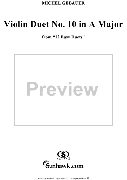 Digital Sheet Music for Violin Duet No. 10 in A Major from "Twelve Easy Duets", Op. 10 - Violin 2 by Michel Gebauer scored for Two Violins; id:304016