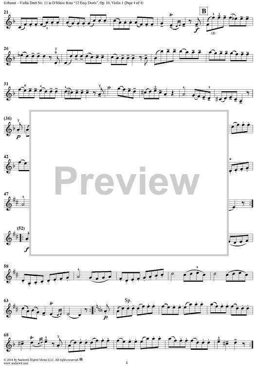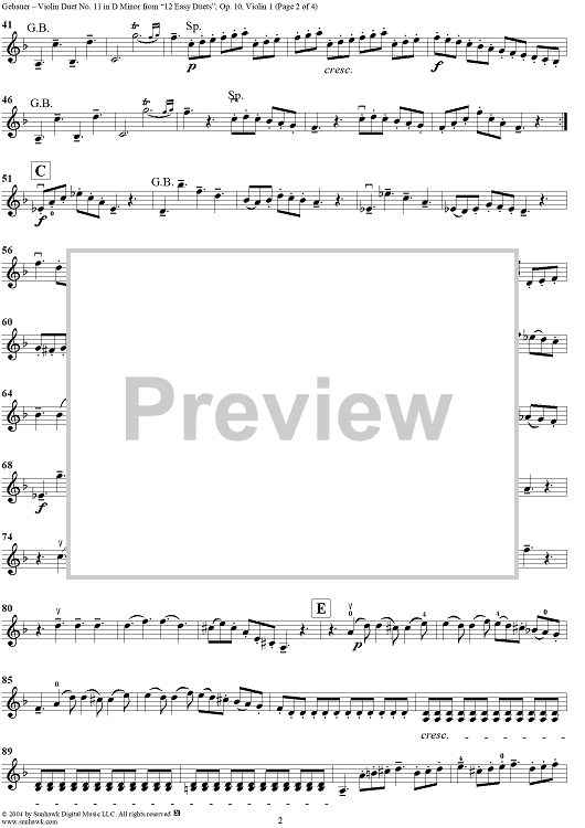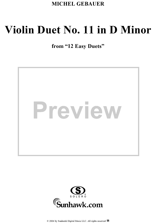 Digital Sheet Music for Violin Duet No. 11 in D Minor from "Twelve Easy Duets", Op. 10 - Violin 1 by Michel Gebauer scored for Two Violins; id:304011