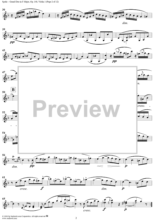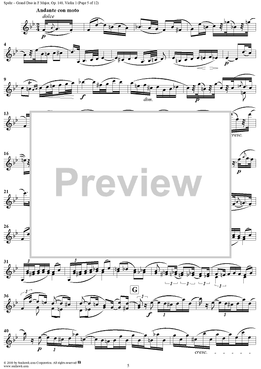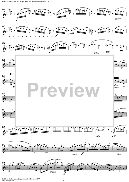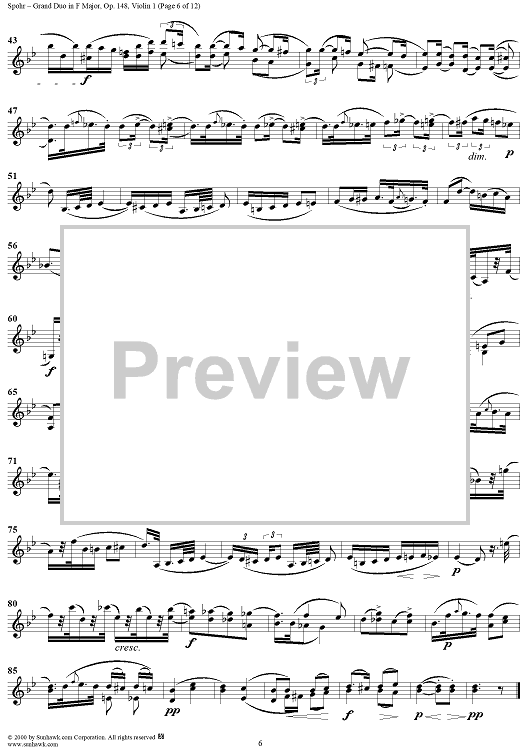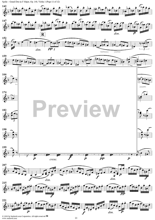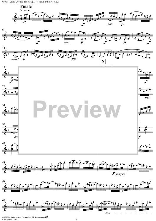 Digital Sheet Music for Violin Duet No. 12 in F Major, Op. 148 - Violin 1 by Louis Ludwig Spohr scored for Two Violins; id:257796