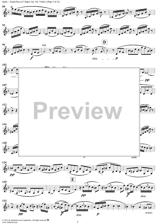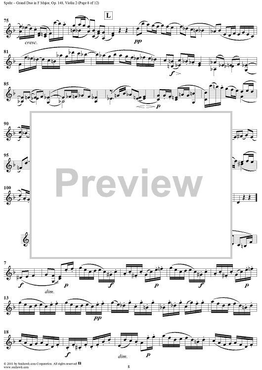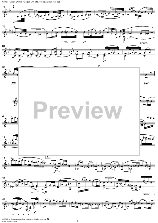 Digital Sheet Music for Violin Duet No. 12 in F Major, Op. 148 - Violin 2 by Louis Ludwig Spohr scored for Two Violins; id:257810