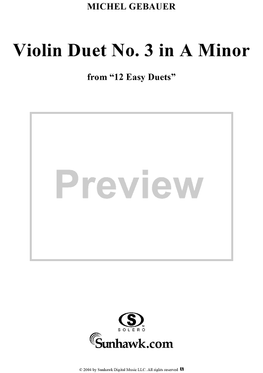 Digital Sheet Music for Violin Duet No. 3 in A Minor from "Twelve Easy Duets", Op. 10 - Violin 2 by Michel Gebauer scored for Two Violins; id:304023