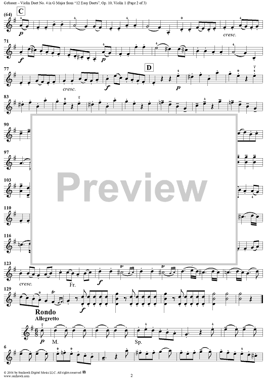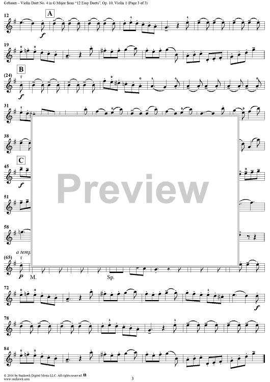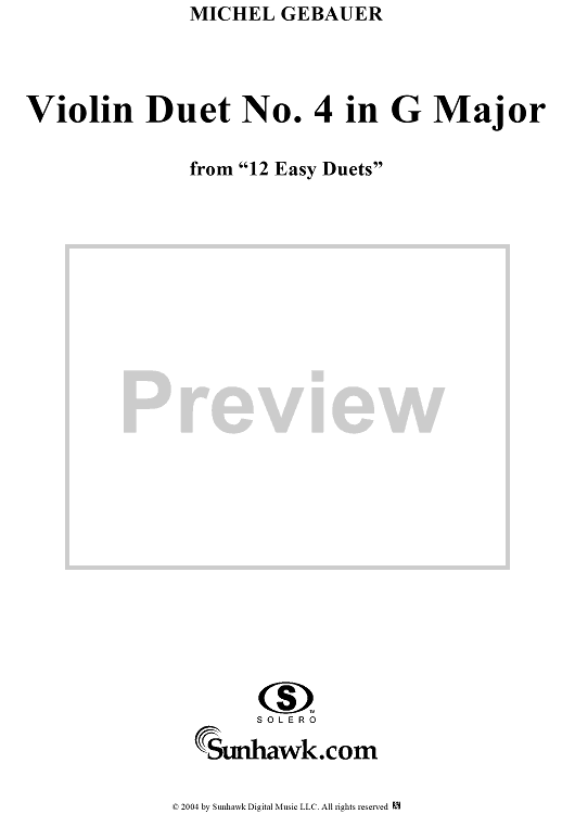 Digital Sheet Music for Violin Duet No. 4 in G Major from "Twelve Easy Duets", Op. 10 - Violin 1 by Michel Gebauer scored for Two Violins; id:304004