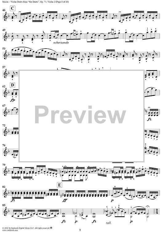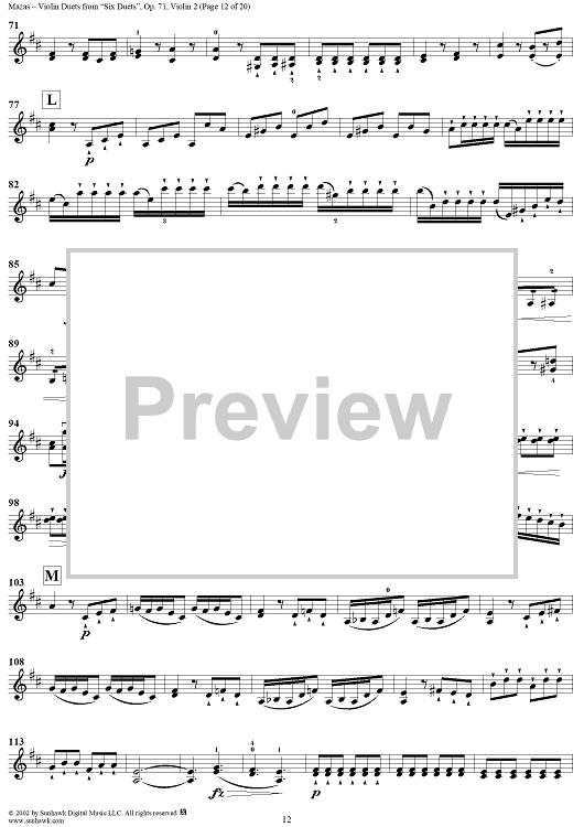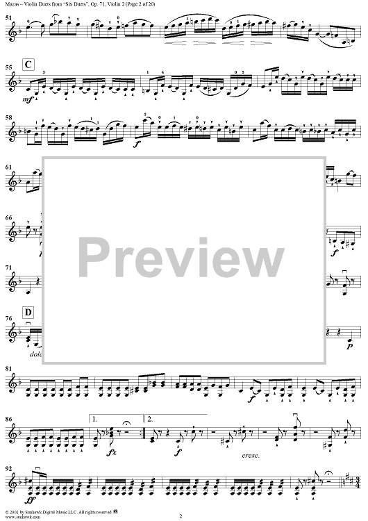 "Violin Duets, Op. 71 - Violin 2" Sheet Music by Jacques-Féréol Mazas