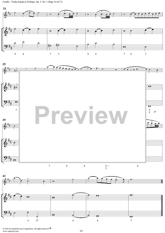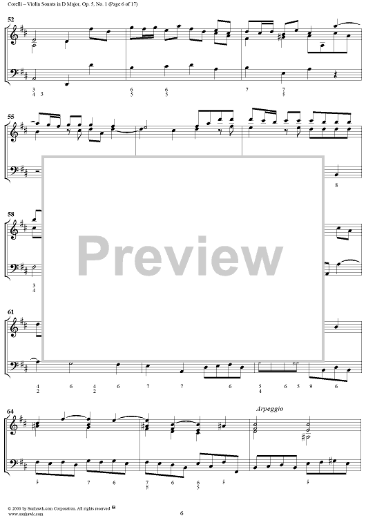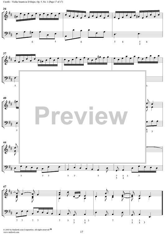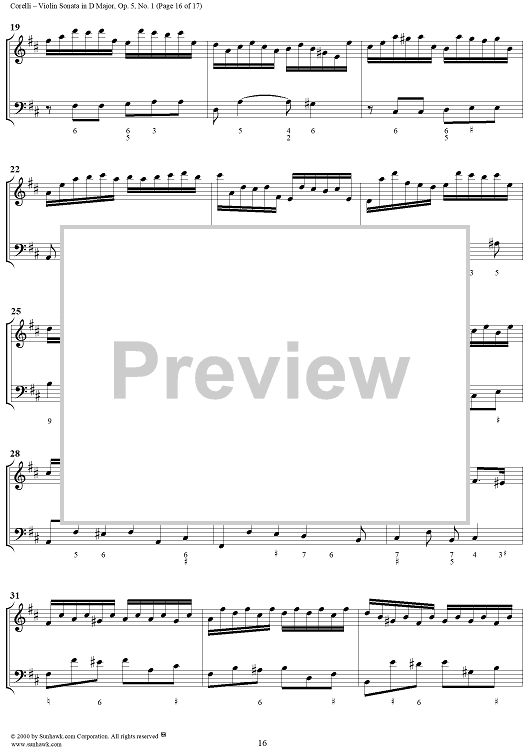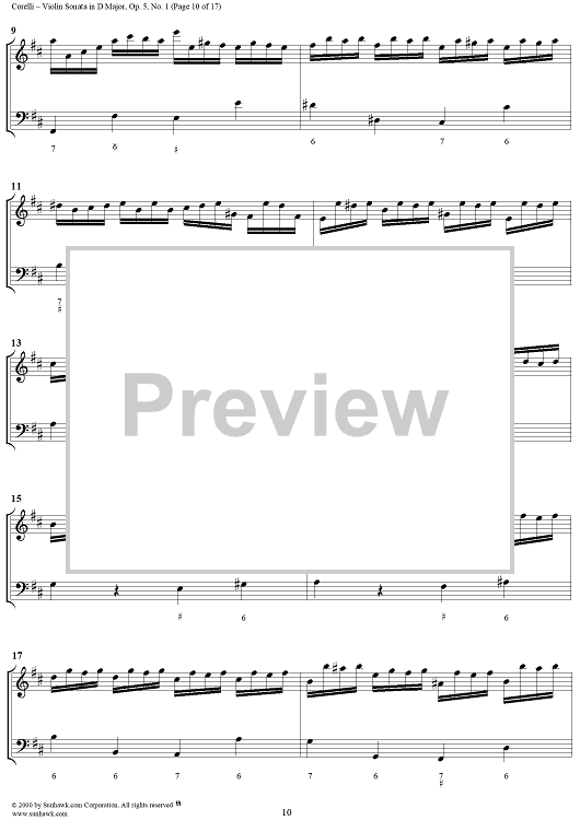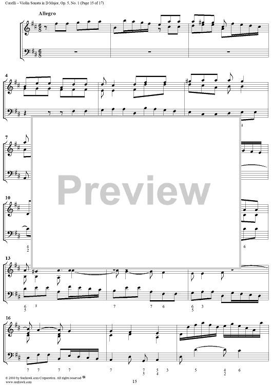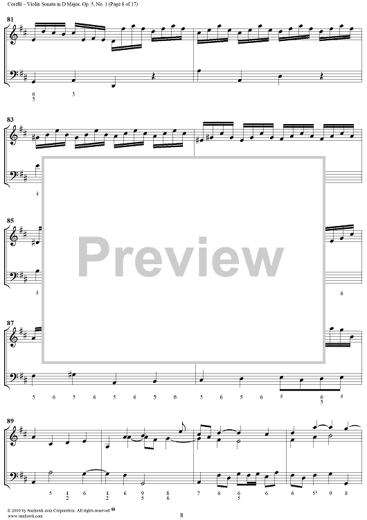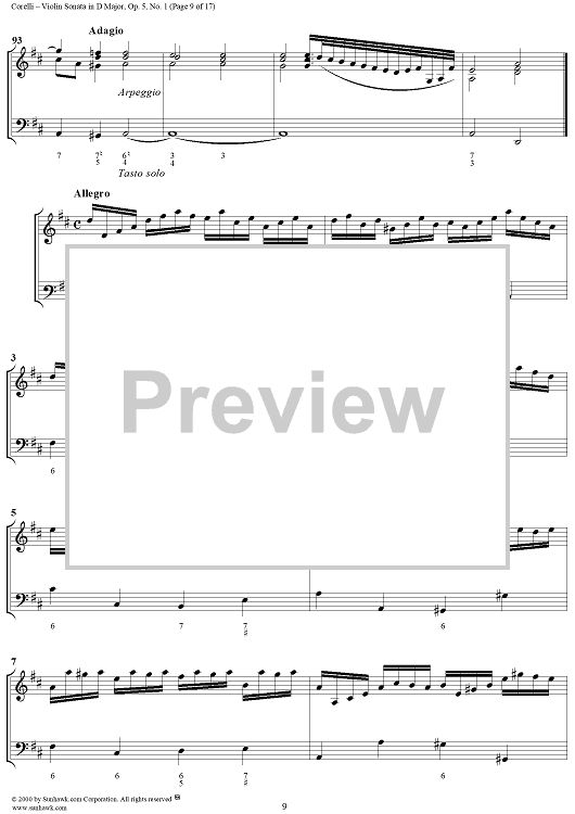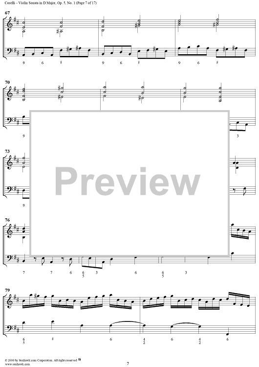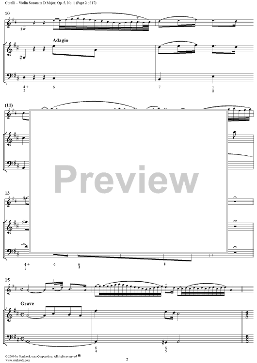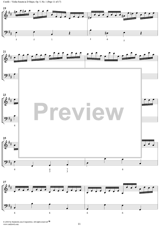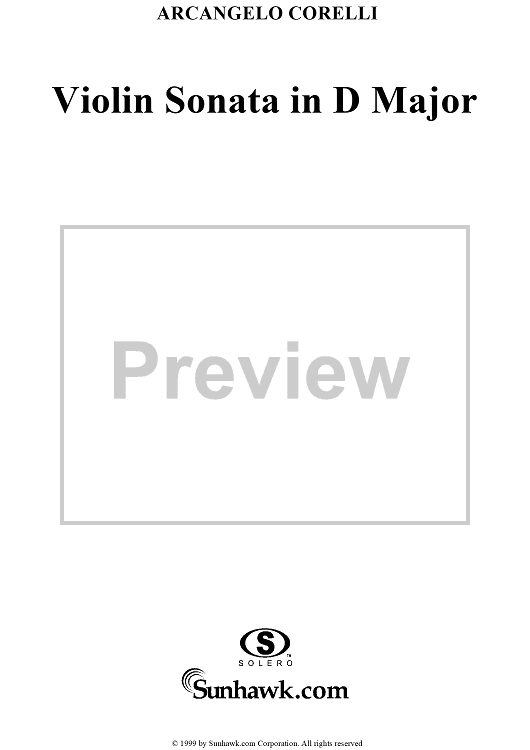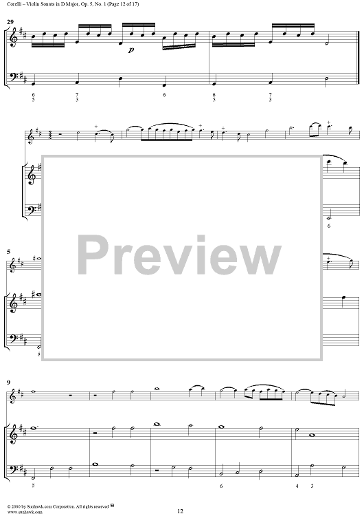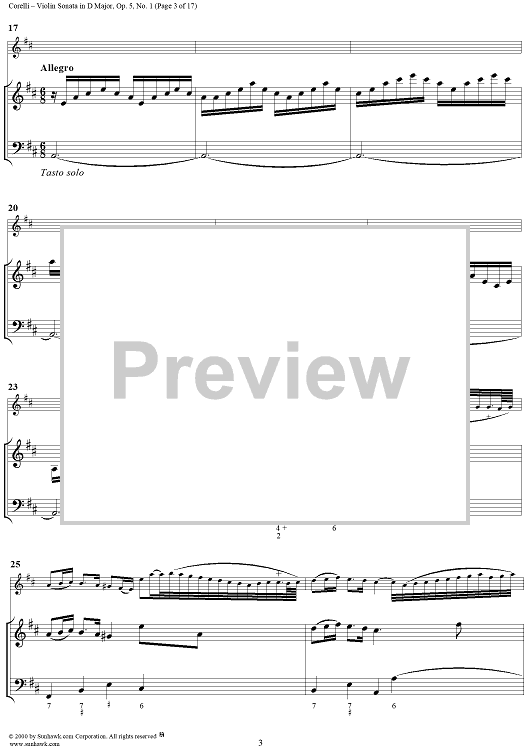 Digital Sheet Music for Violin Sonata No. 1 - Piano Score by Arcangelo Corelli scored for Violin/Continuo; id:186204