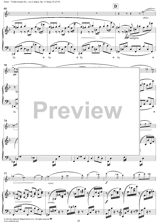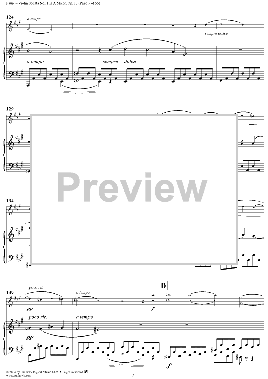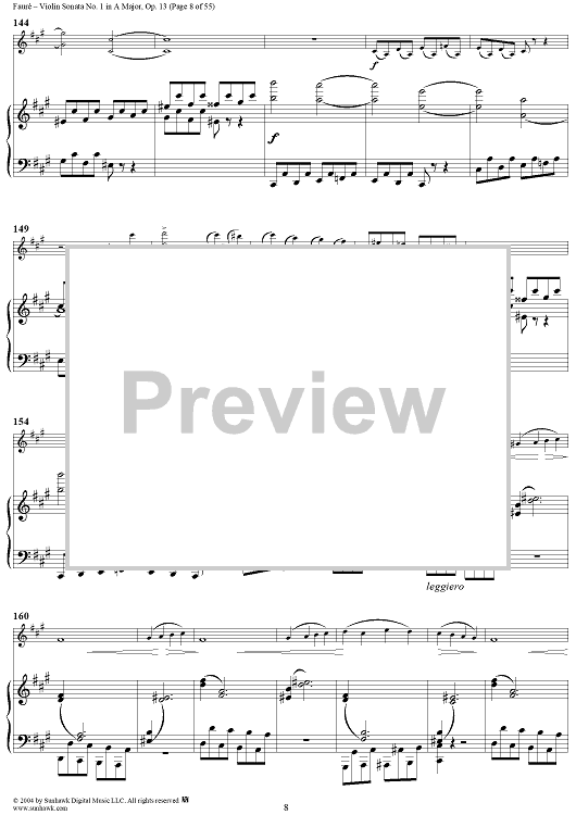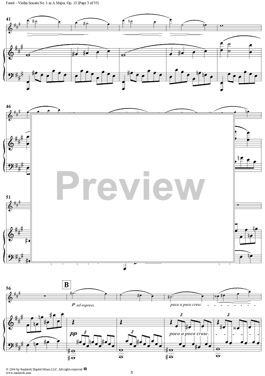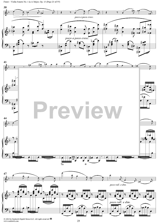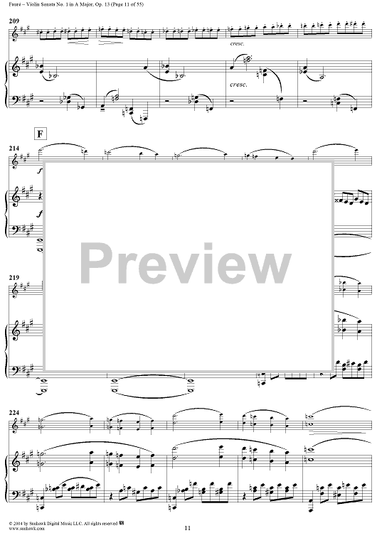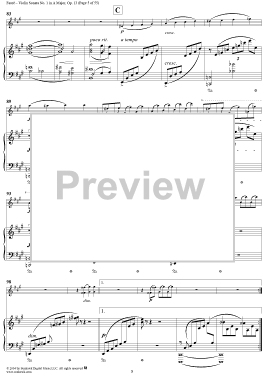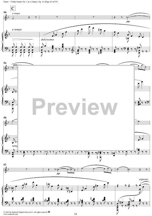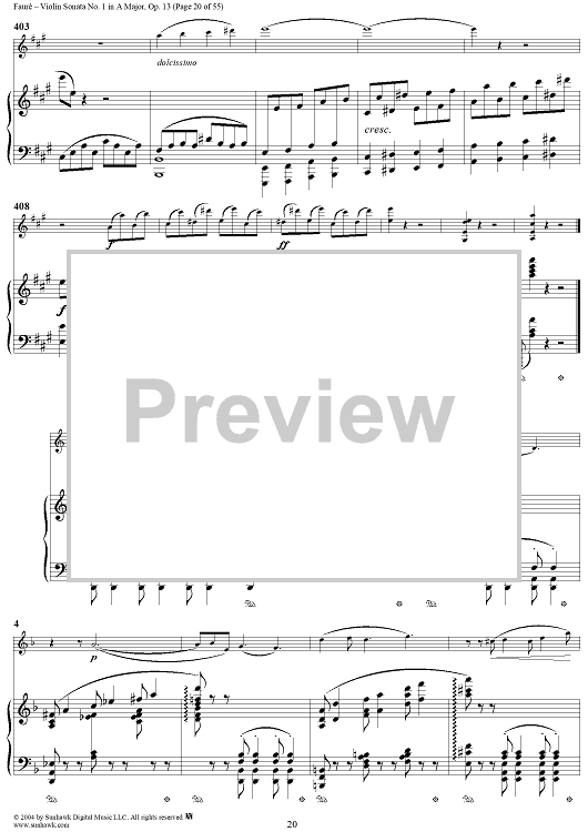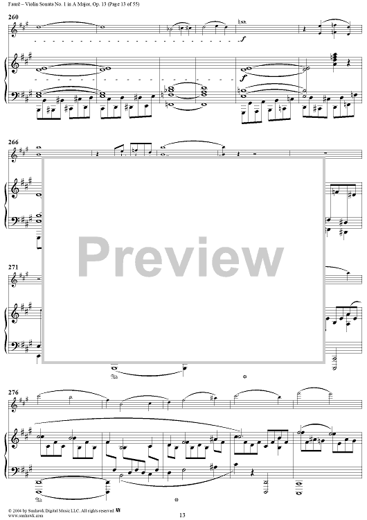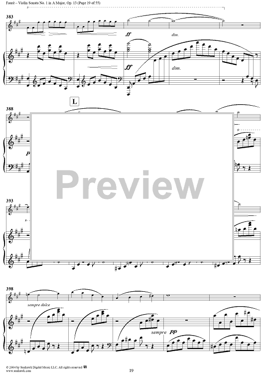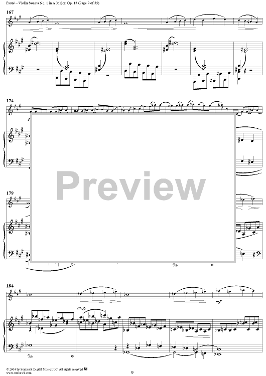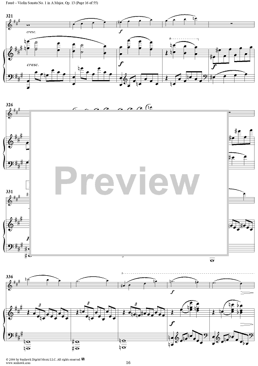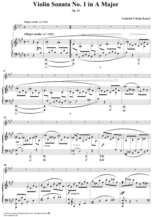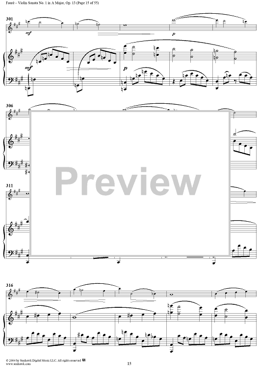 Digital Sheet Music for Violin Sonata No. 1 - Piano Score by Gabriel Fauré scored for Violin/Piano; id:269985