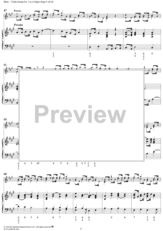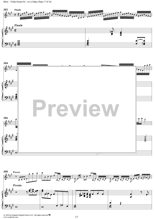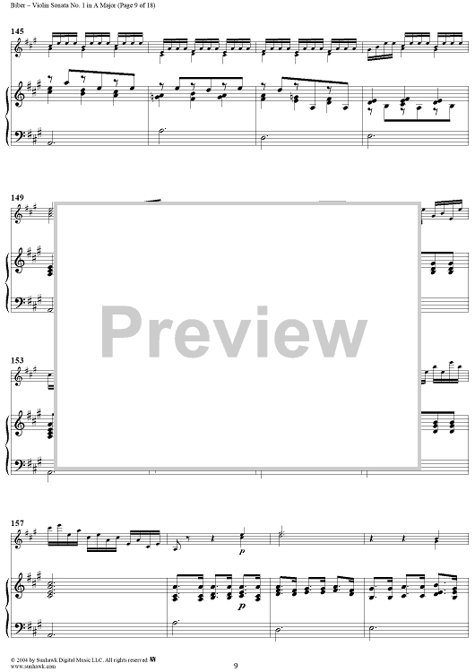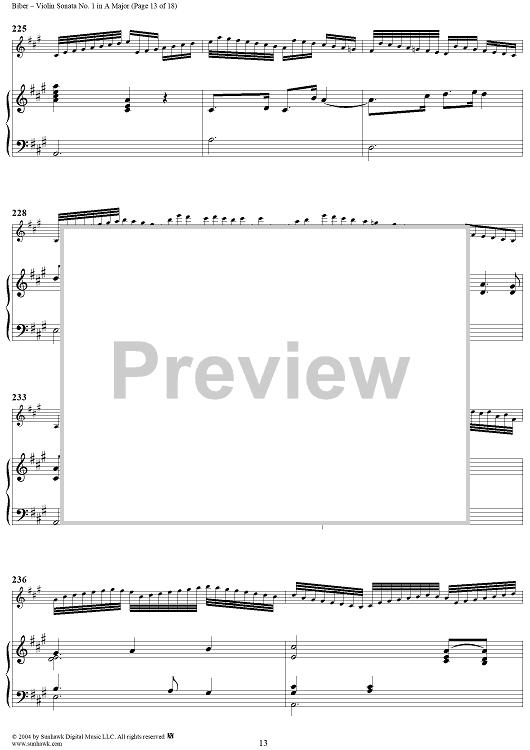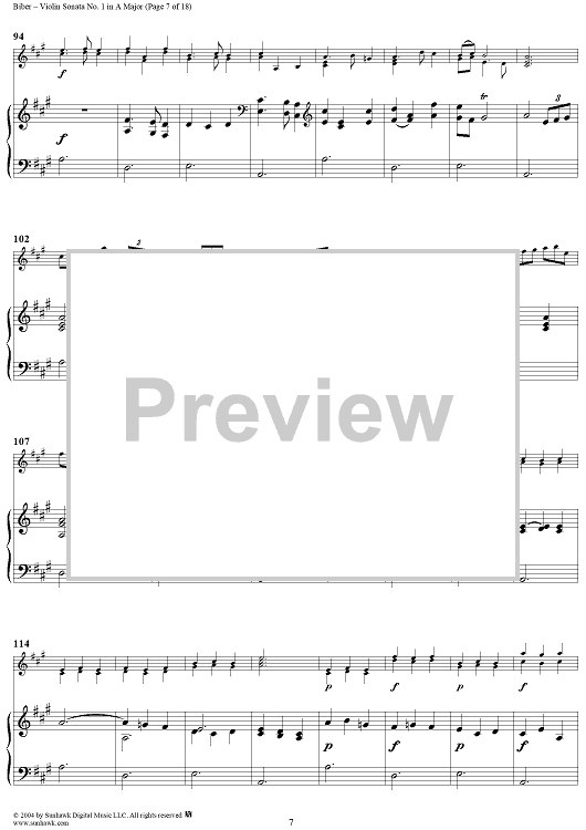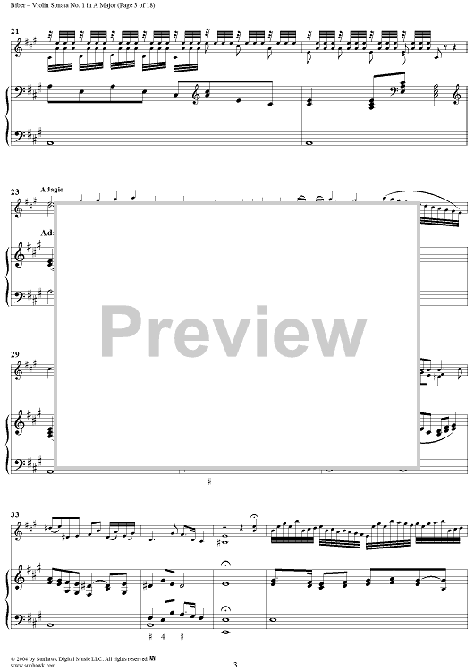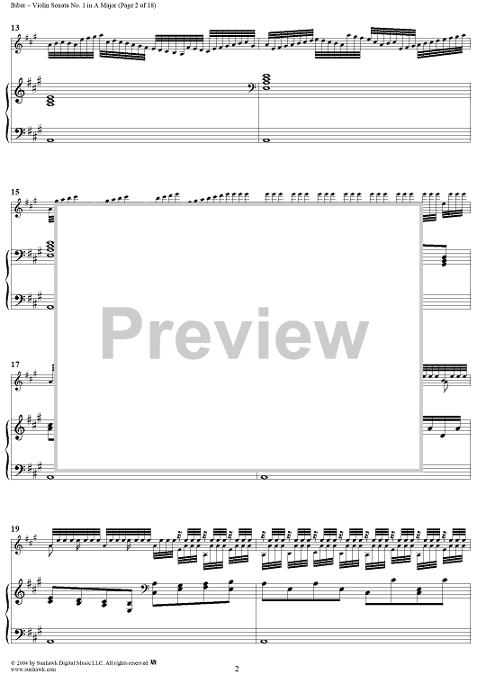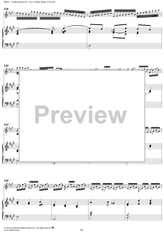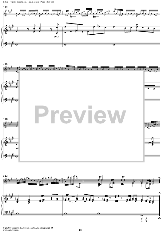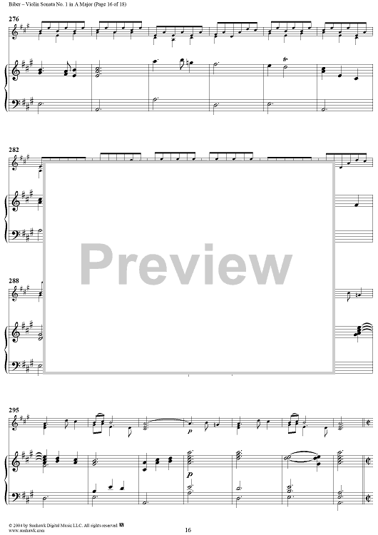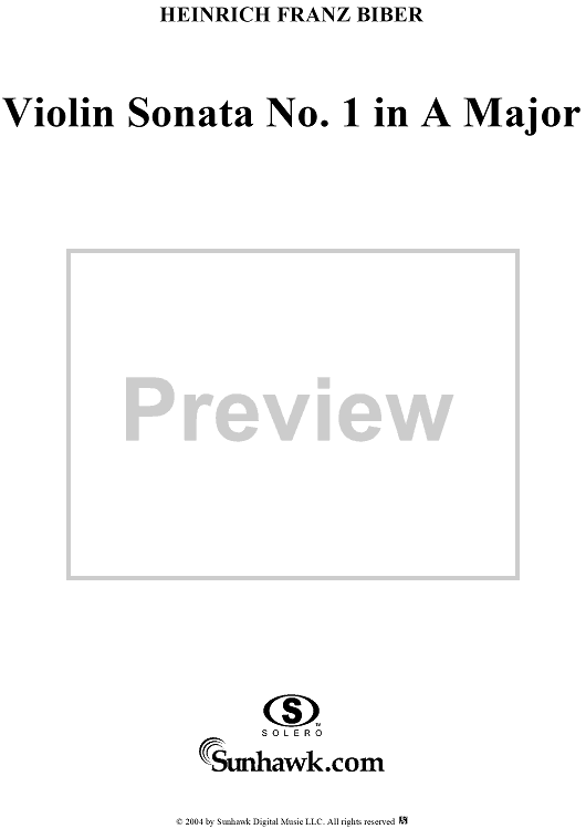 Digital Sheet Music for Violin Sonata No. 1 - Piano Score by Heinrich Franz Biber scored for Violin/Piano; id:298070
