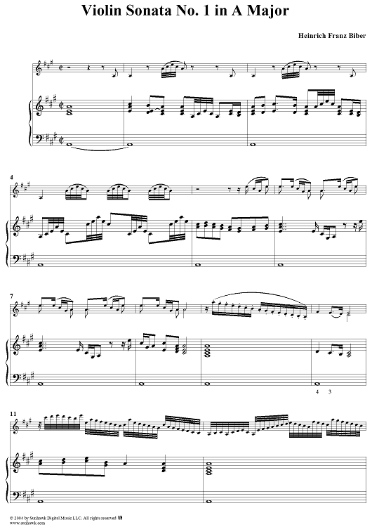 "Violin Sonata No. 1 - Piano Score" Sheet Music by Heinrich Franz Biber
