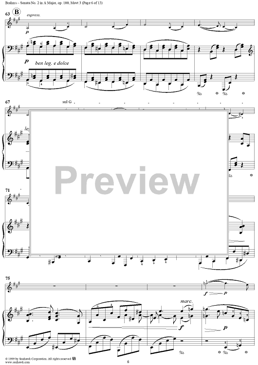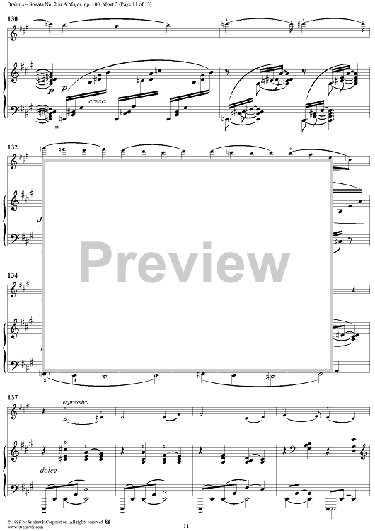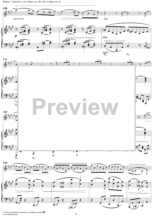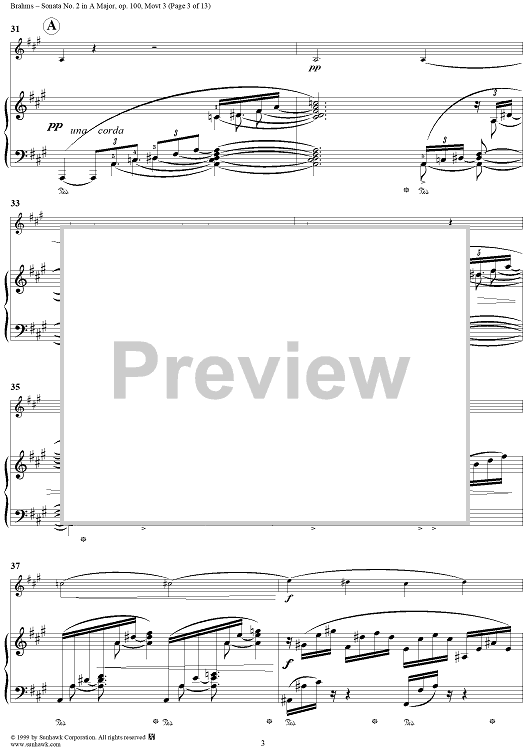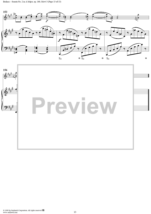 Digital Sheet Music for Violin Sonata No. 2, Movement 3 - Piano Score by Johannes Brahms scored for Violin/Piano; id:273921