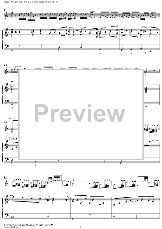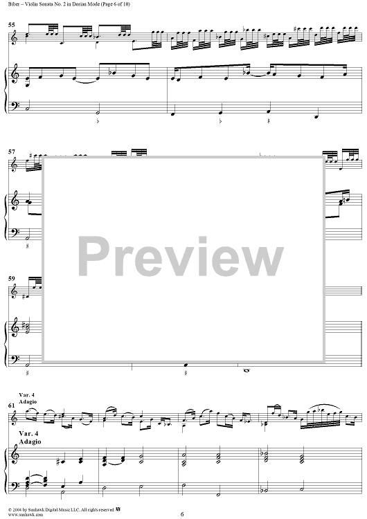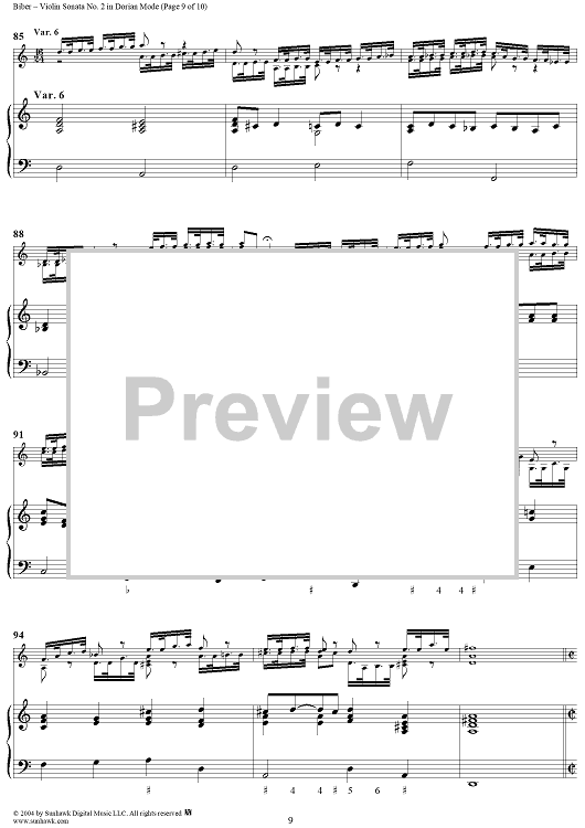 Digital Sheet Music for Violin Sonata No. 2 - Piano Score by Heinrich Franz Biber scored for Violin/Piano; id:298071