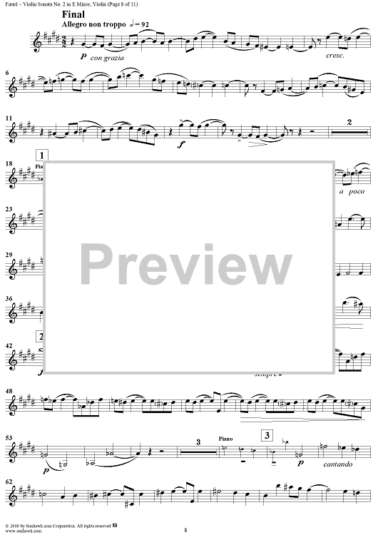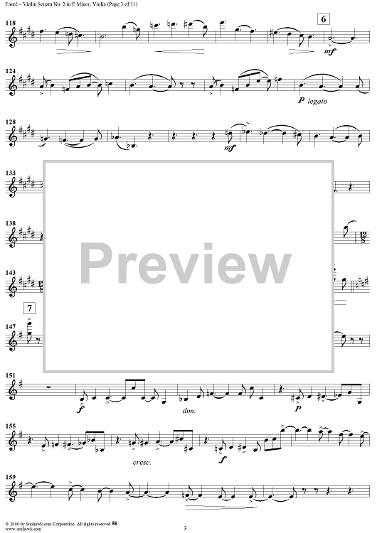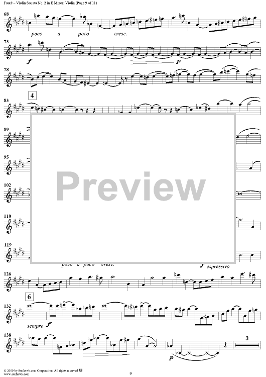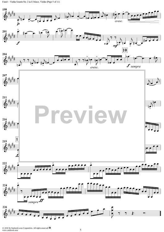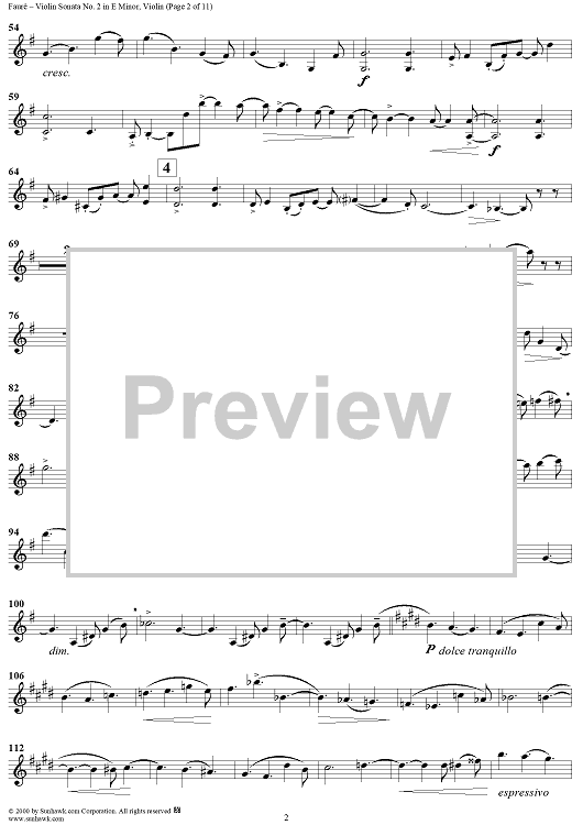 Digital Sheet Music for Violin Sonata No. 2 - Violin by Gabriel Fauré scored for Violin/Piano; id:269758