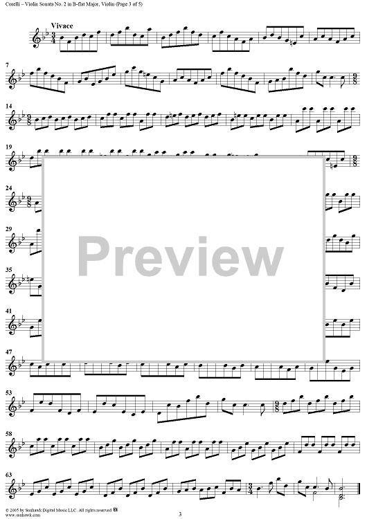 Digital Sheet Music for Violin Sonata No. 2 - Violin by Arcangelo Corelli scored for Violin/Continuo; id:309735