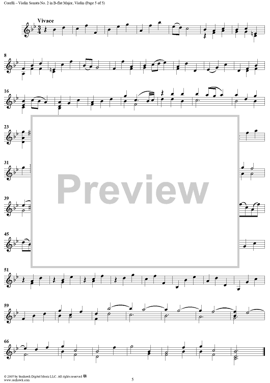 "Violin Sonata No. 2 - Violin" Sheet Music by Arcangelo Corelli