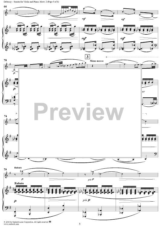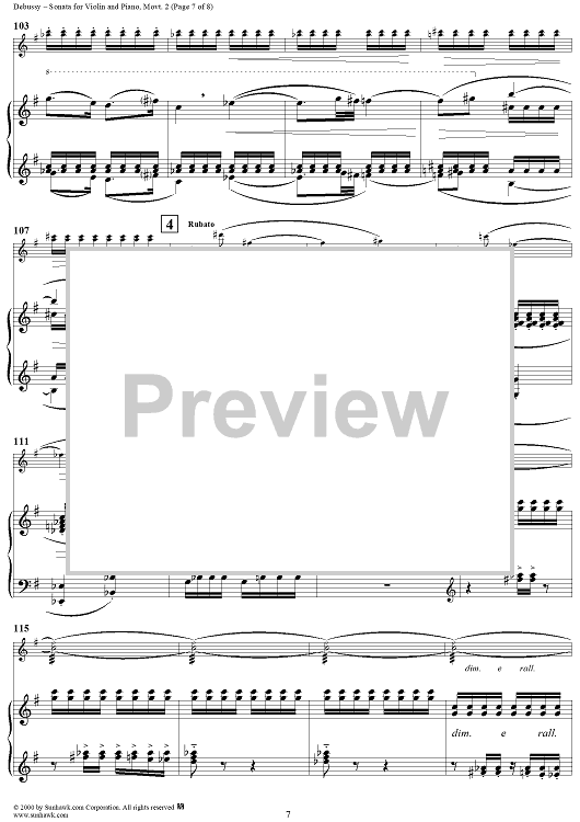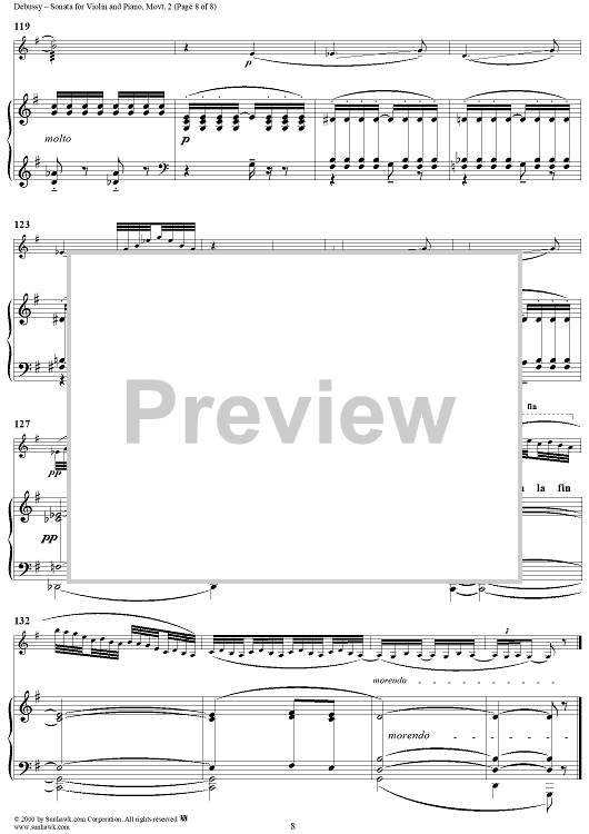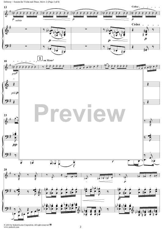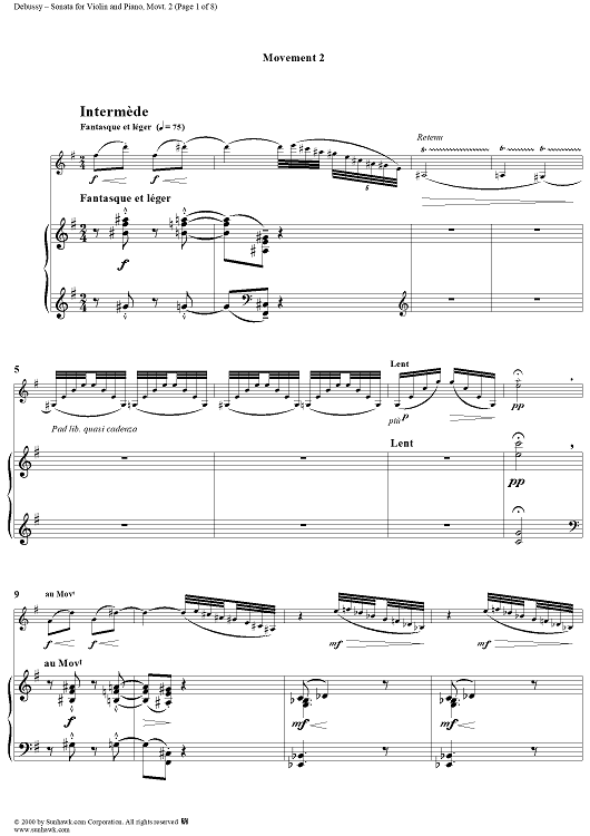 Digital Sheet Music for Violin Sonata No. 3, Movement 2 - Piano Score by Claude Debussy scored for Violin/Piano; id:241358