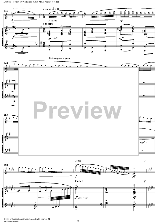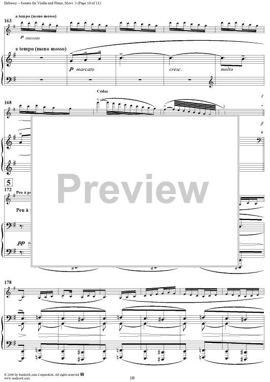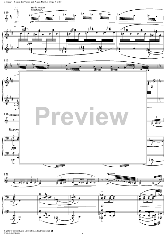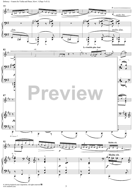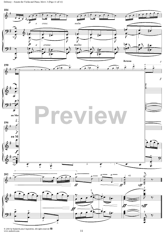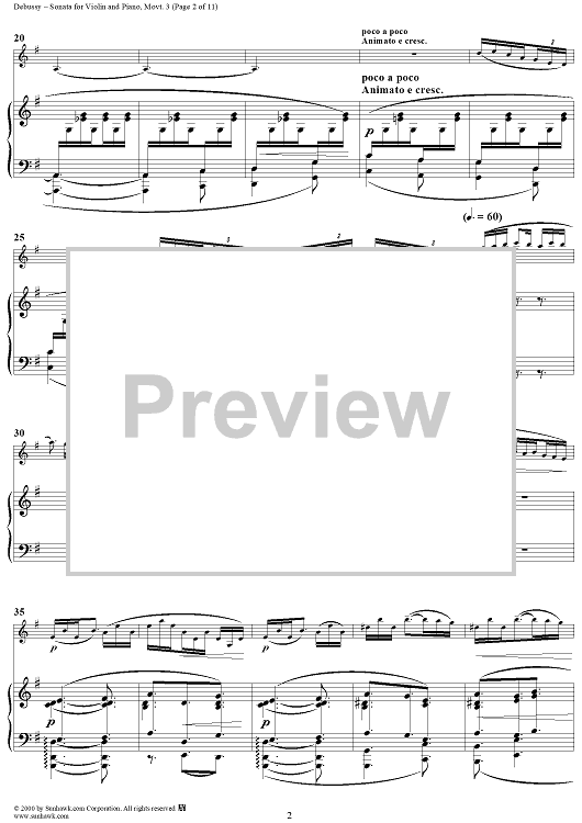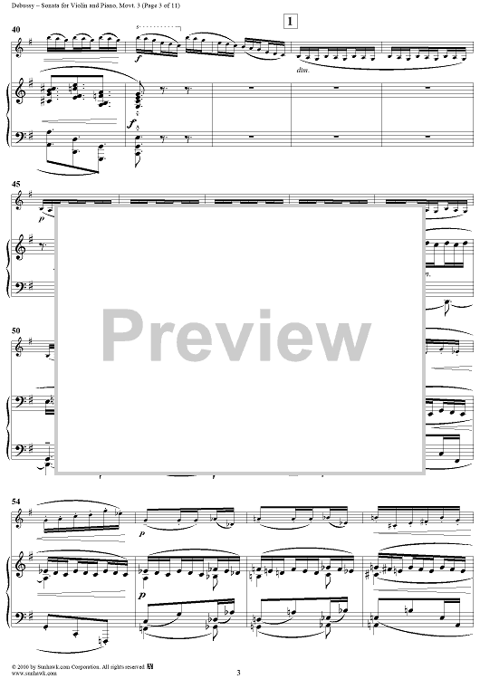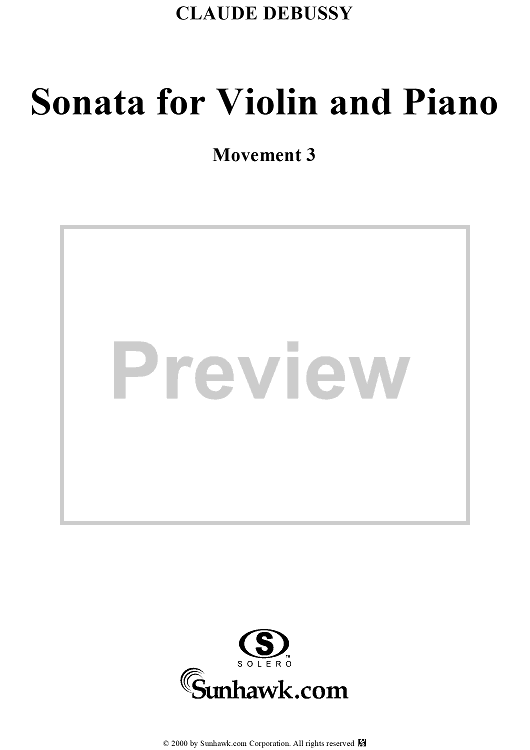 Digital Sheet Music for Violin Sonata No. 3, Movement 3 - Piano Score by Claude Debussy scored for Violin/Piano; id:241359