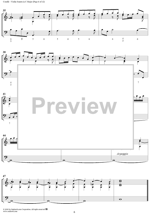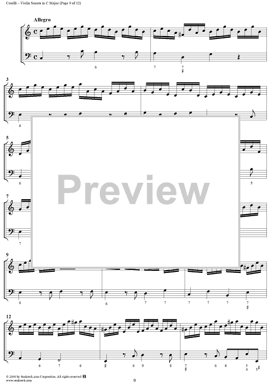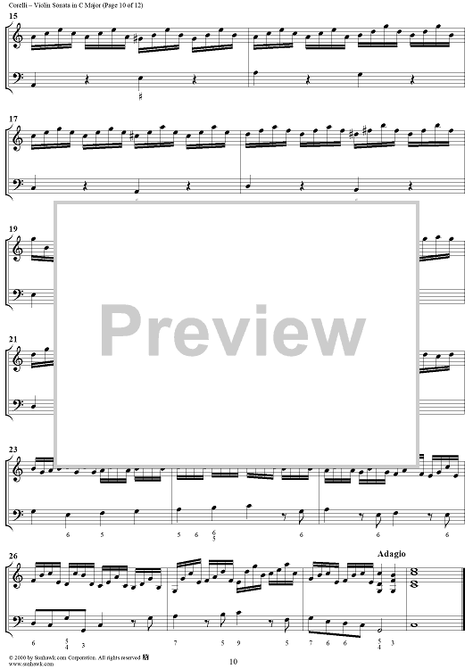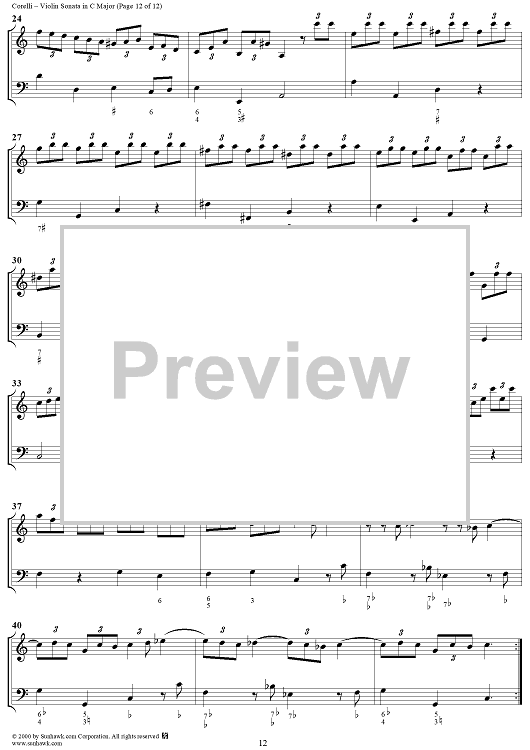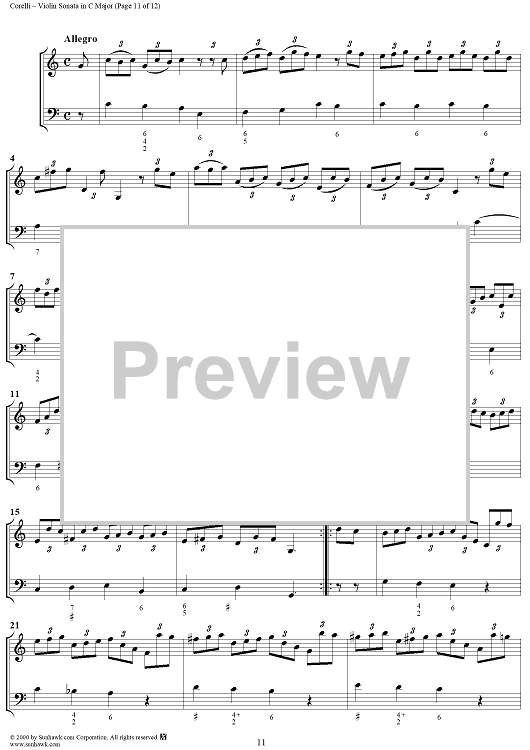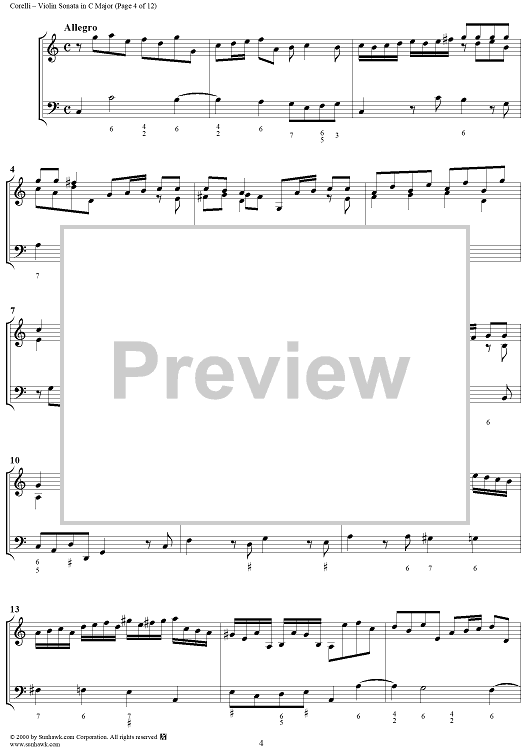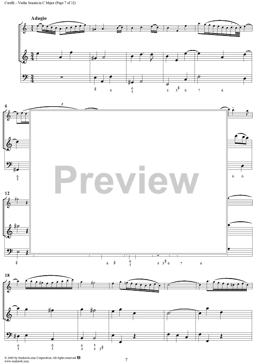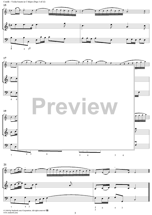 Digital Sheet Music for Violin Sonata No. 3 - Piano Score by Arcangelo Corelli scored for Violin/Continuo; id:240961