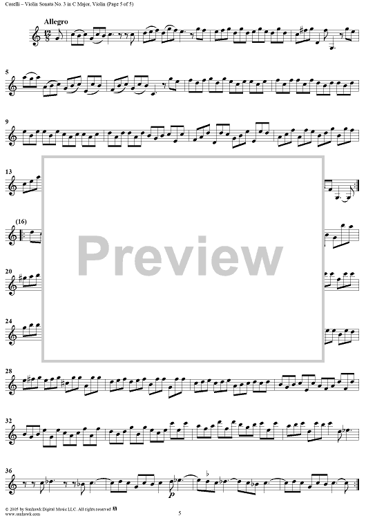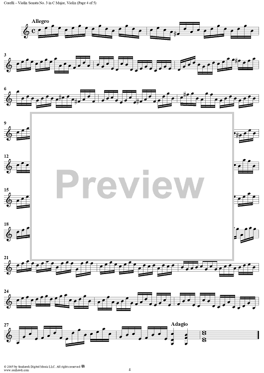 Digital Sheet Music for Violin Sonata No. 3 - Violin by Arcangelo Corelli scored for Violin/Continuo; id:309736