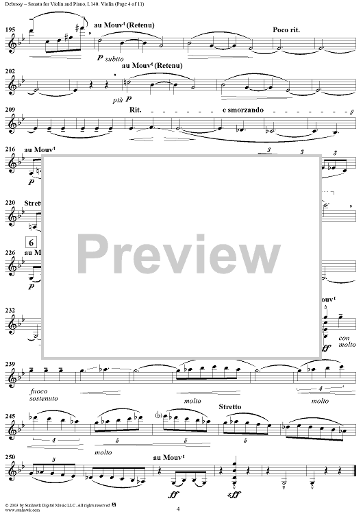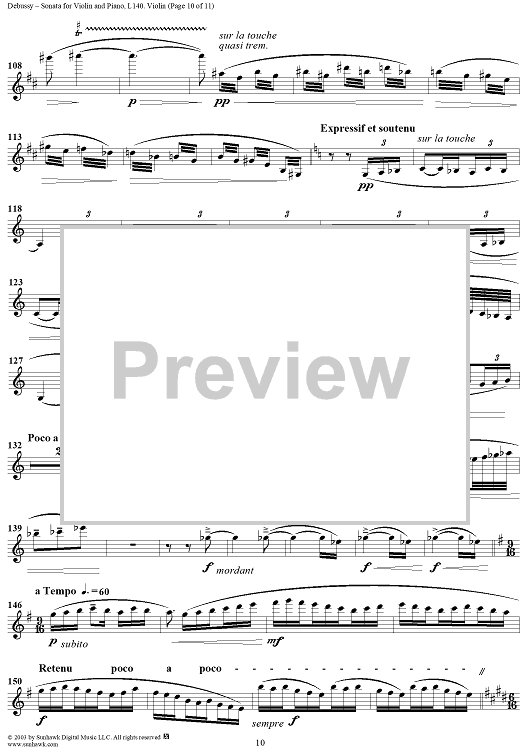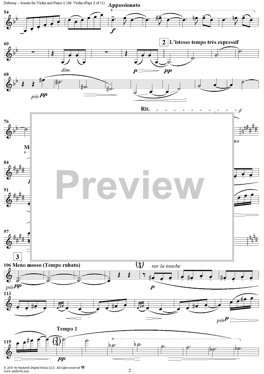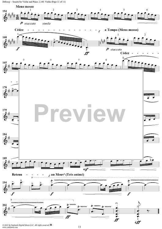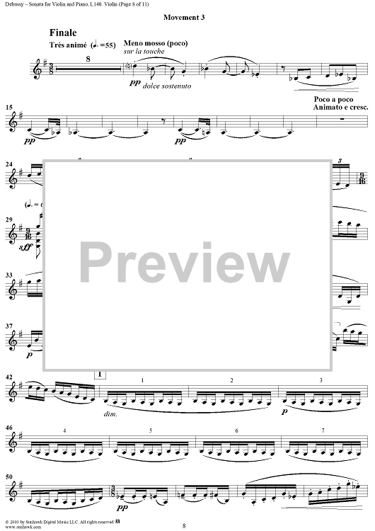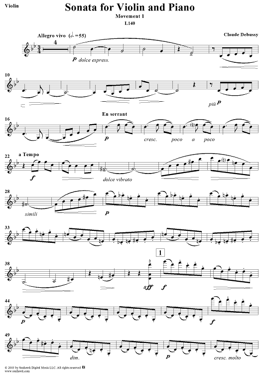 Digital Sheet Music for Violin Sonata No. 3 - Violin by Claude Debussy scored for Violin/Piano; id:309767